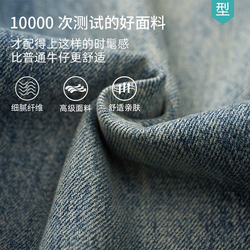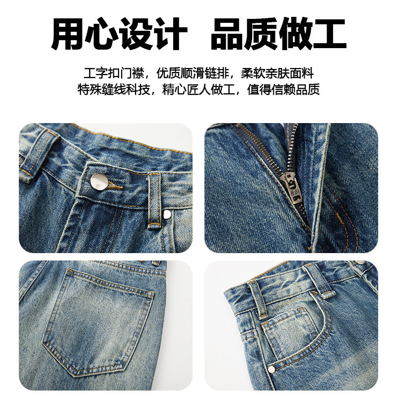 天猫【定制裤长】2025年新款美式复古宽松阔腿直筒牛仔裤男士冬新款