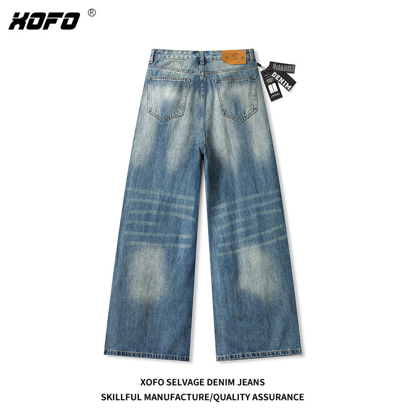 豪霆.美式复古宽松直筒牛仔裤男士春秋季潮流cleanfi休闲阔腿长裤