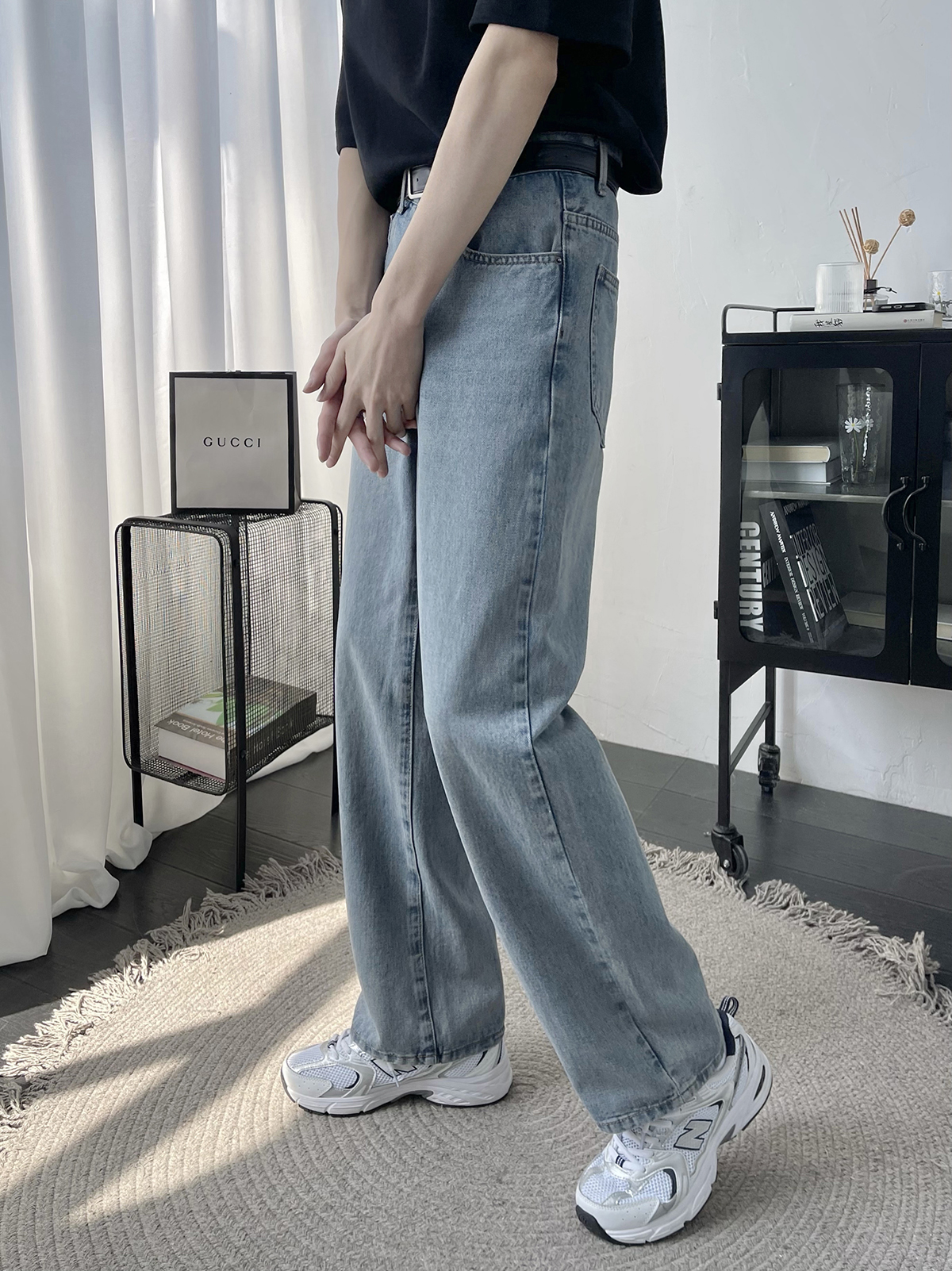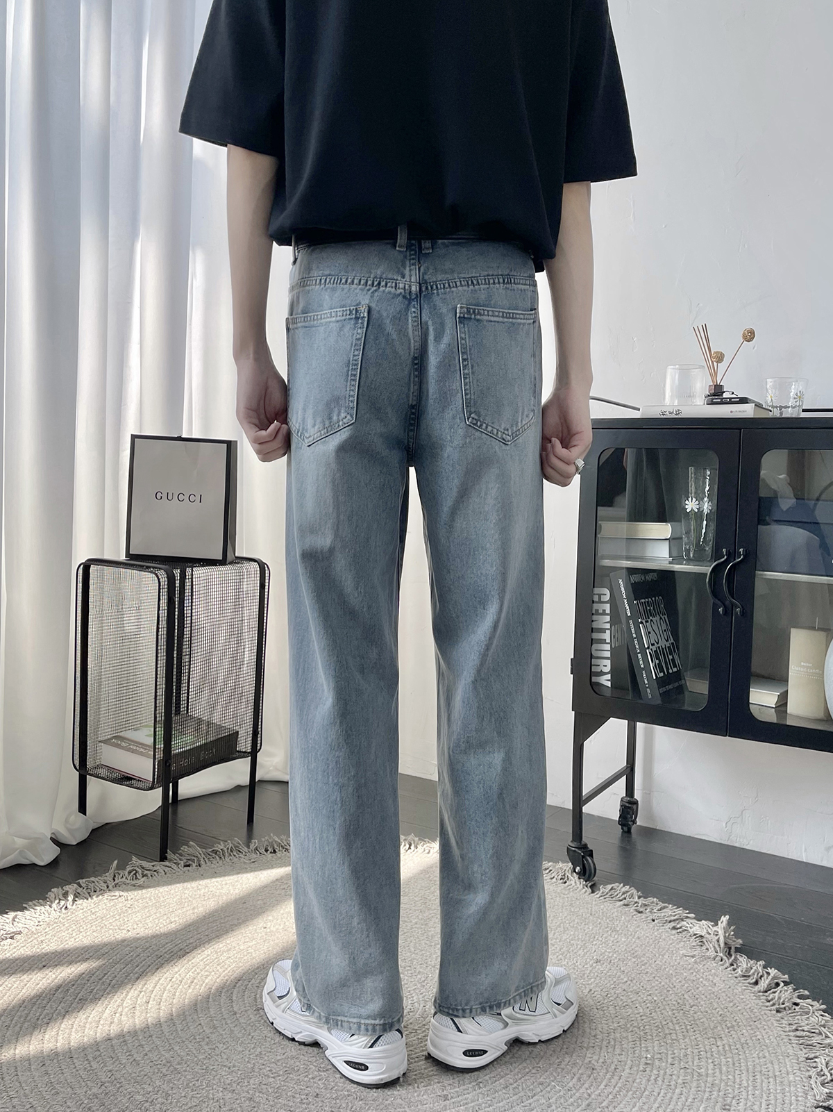 〔TBKL〕复古通勤浅蓝色立体猫须水洗男士牛仔裤直筒合身做旧长裤