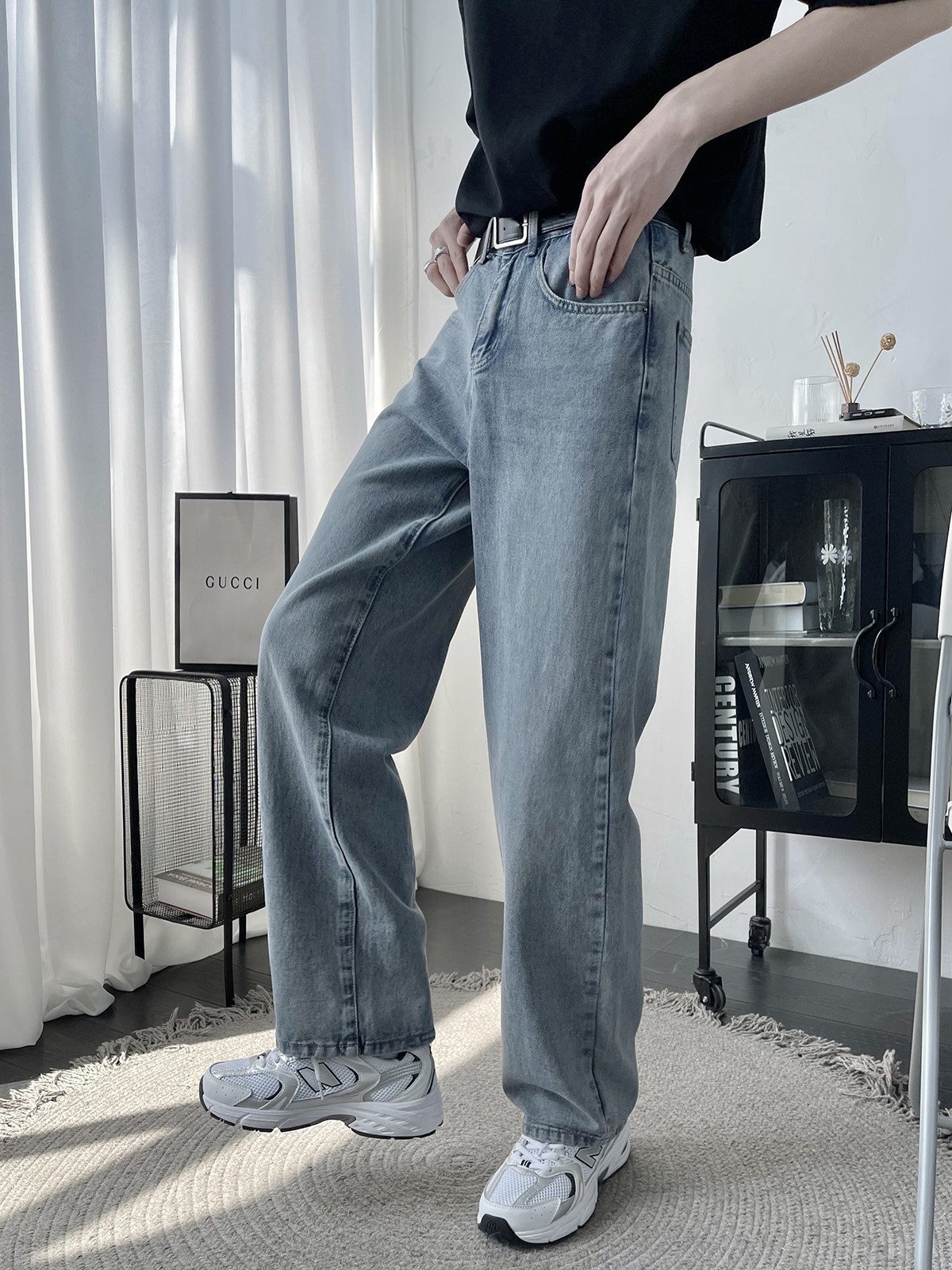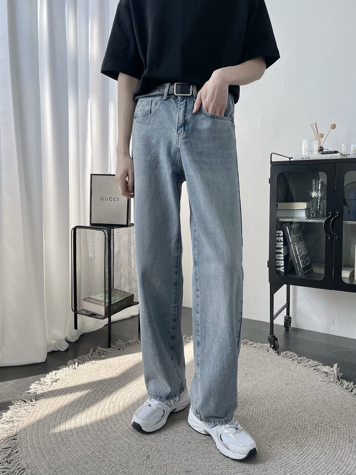 淘宝水洗复古牛仔裤男宽松直筒垂感裤ins日系痞帅拖地长裤大码阔腿裤