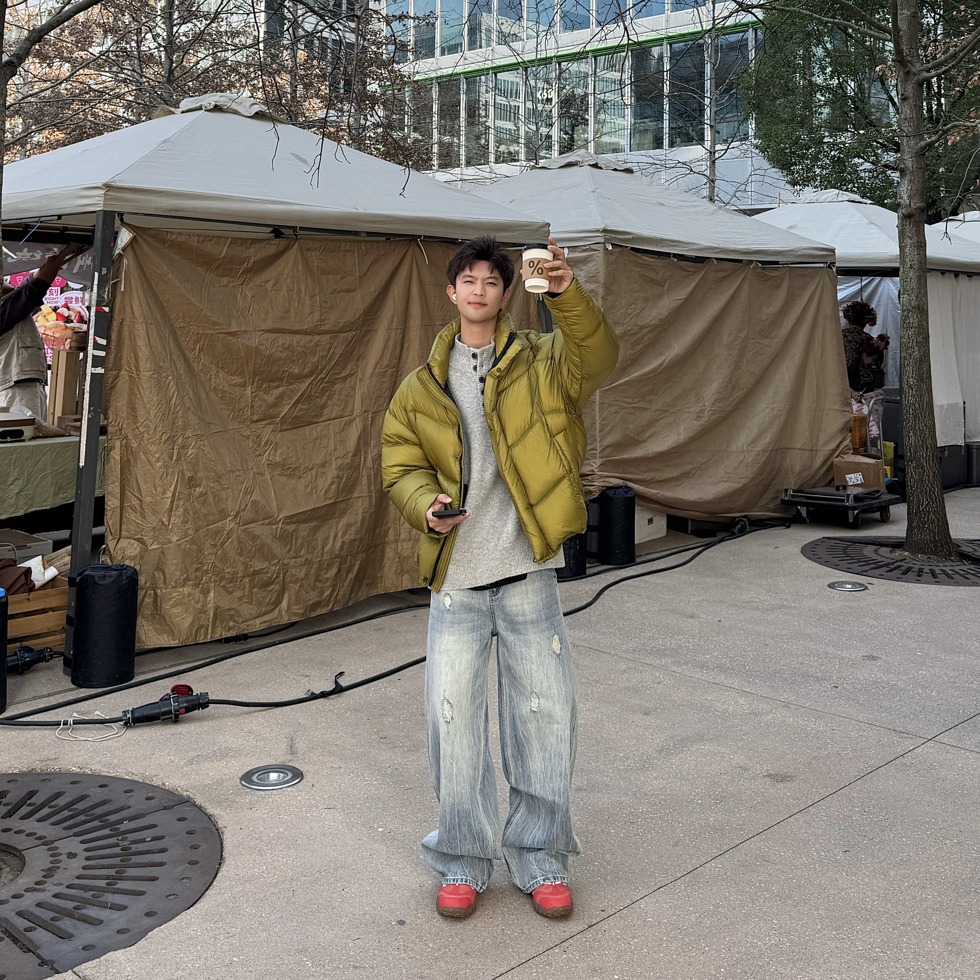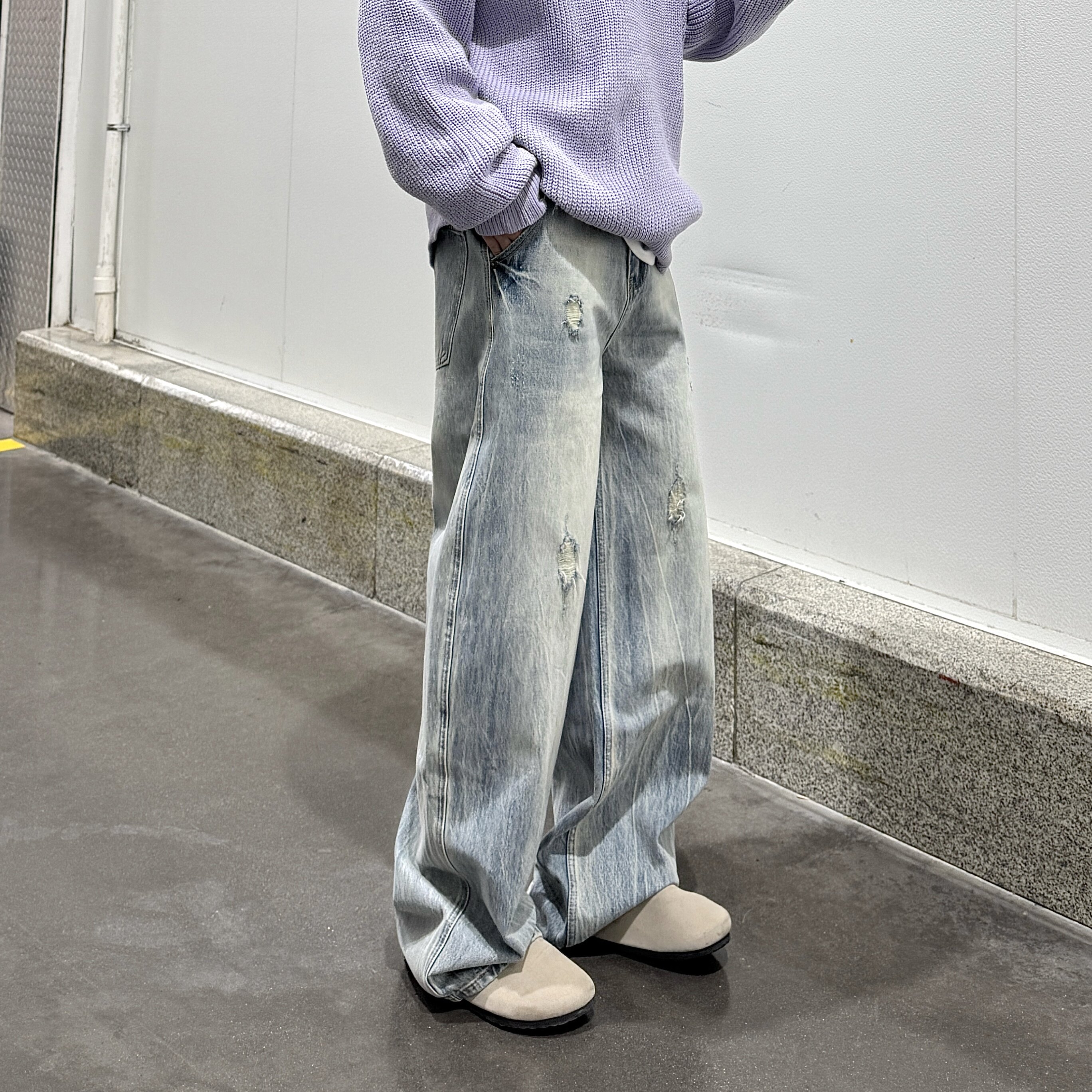 5355紫标版型!秋冬款宽松阔腿裤锥形牛仔裤男慵懒风裤子不掉色