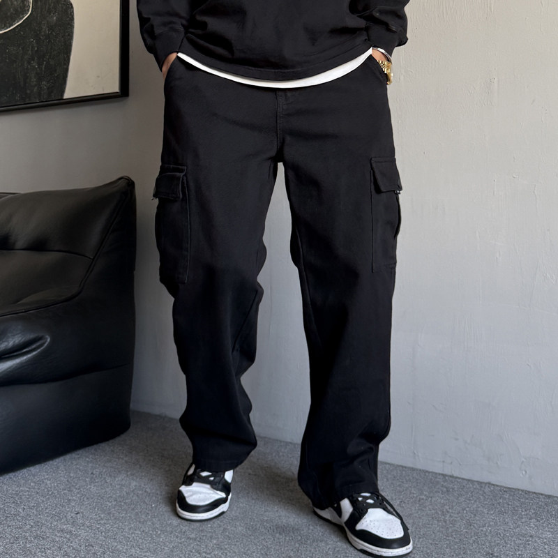 淘宝春秋季美式休闲痞帅水洗黑色工装牛仔裤男直筒宽松百搭阔腿裤子潮