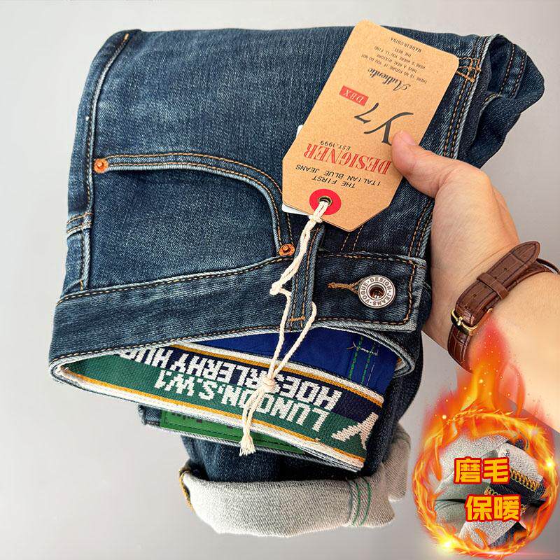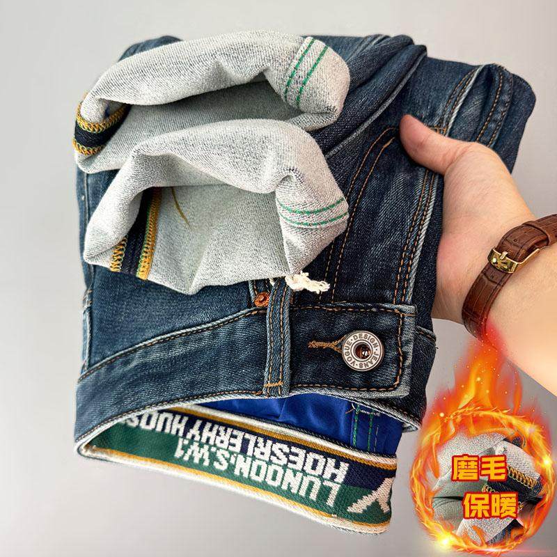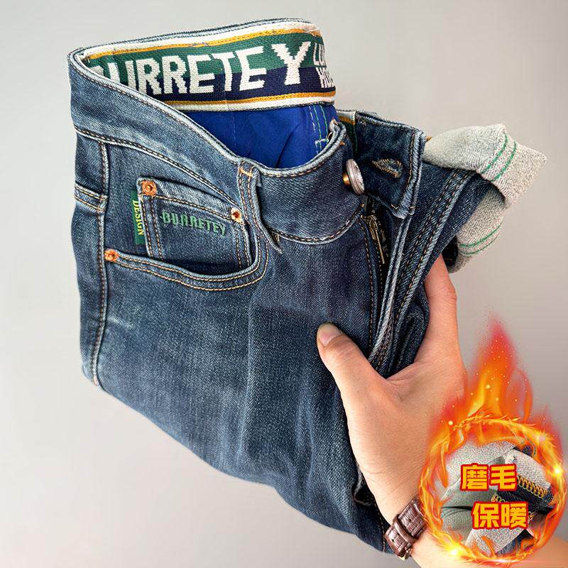淘宝高端磨毛2025冬季好抓绒弹厚款修身直筒时尚百搭潮流男士牛仔长裤