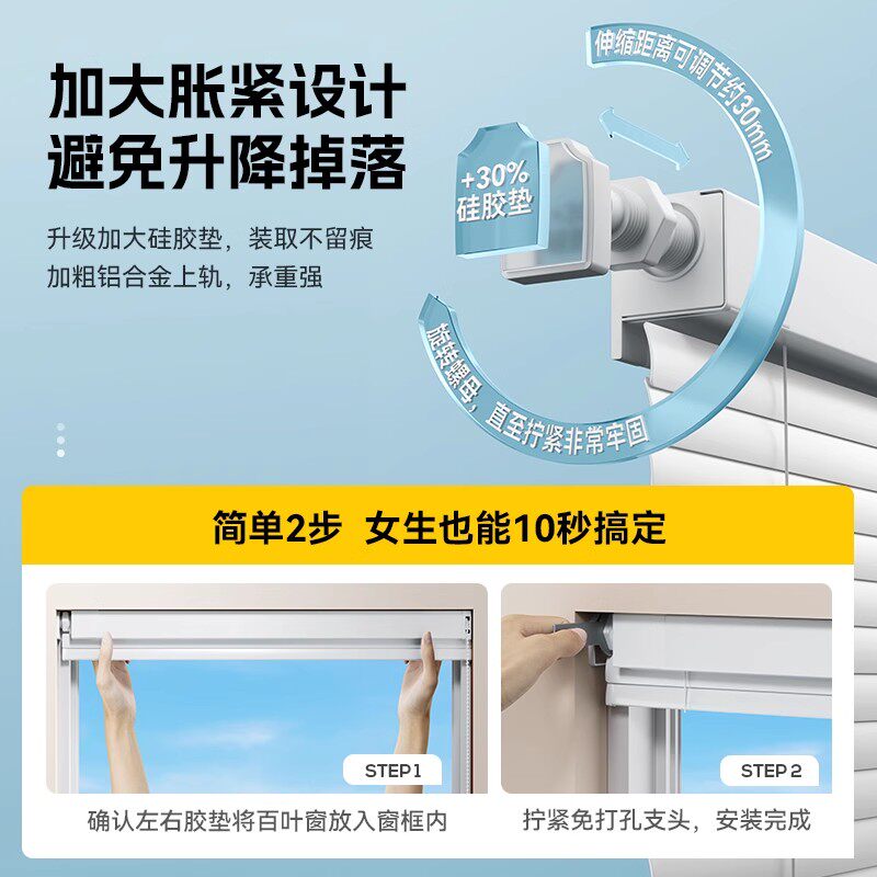 天慕安娜渐变色免打孔铝百叶窗帘厨房卫生间防窥卧室遮光帘定制升降