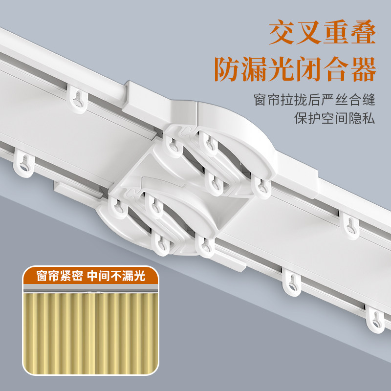天猫窗帘双轨道静音双滑轨双排滑道顶装窗帘杆窗帘盒一体式双层轴承轮