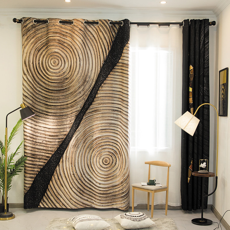 淘宝原木轻奢雪尼尔卧室棉麻印花客厅挂钩短帘全屋寝室高遮光打孔窗帘