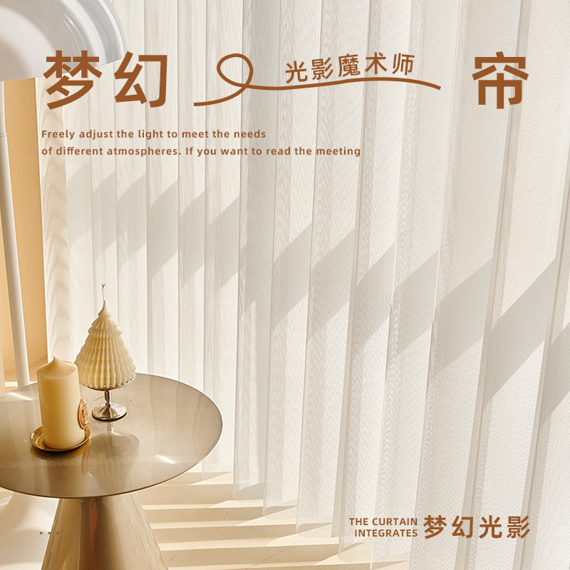 淘梦幻帘窗帘垂直帘阳台客厅梦幻窗帘透光不透人纱帘电动竖百叶窗帘