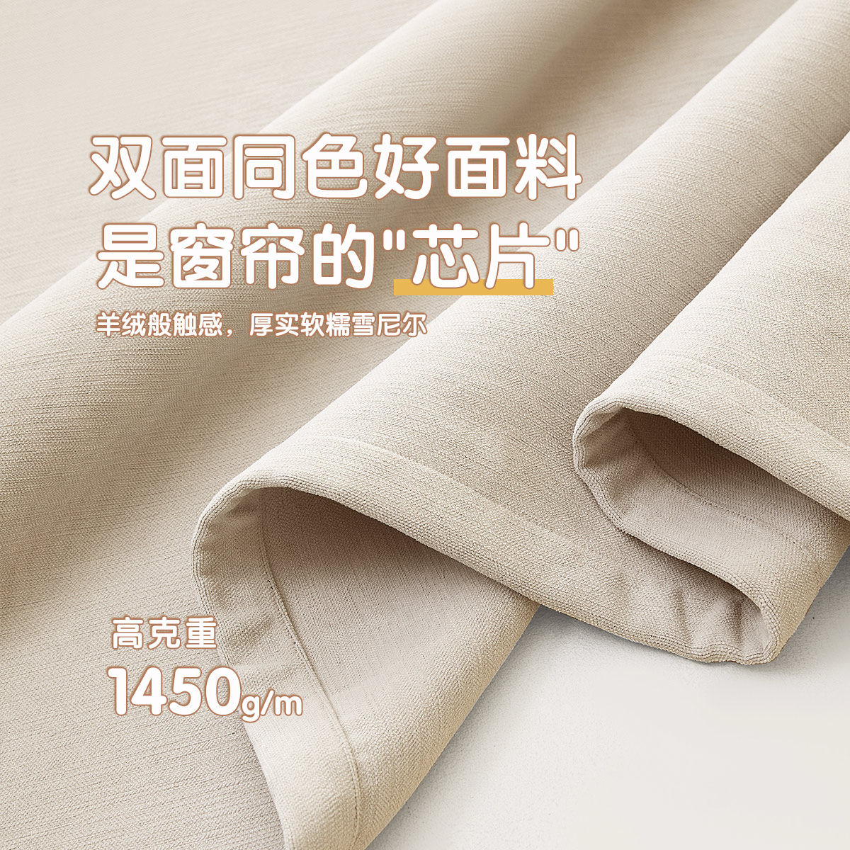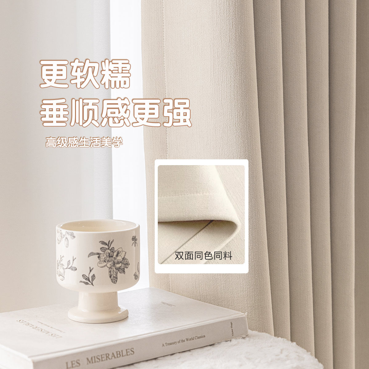 绍兴柯桥窗帘2026新款双面同色雪尼尔卧室全遮光布羊绒奶油风客厅