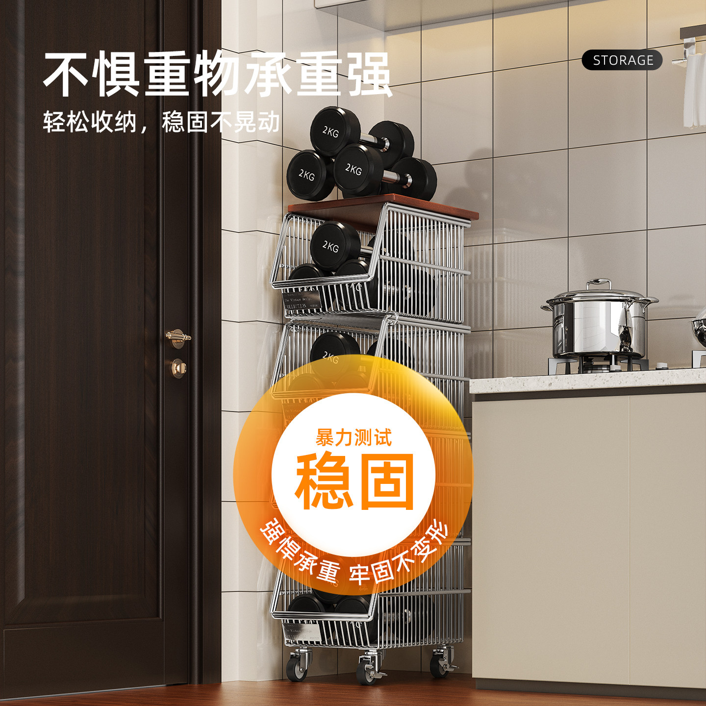 不锈钢厨房夹缝置物架是一款专为厨房狭小空间设计的实用收纳工具。采用优质不锈钢材质,防锈耐腐蚀,承重力强,经久耐用。其超窄设计可完美嵌入冰箱、橱柜或墙角等夹缝空间,充分利用闲置区域。多层结构搭配可调节层板,灵活收纳调料瓶、罐头、清洁用品等厨房杂物,提升空间利用率。底部带静音万向轮,移动便捷,清洁更省力。适用于厨房、阳台、卫生间等多种场景,是小户型家庭提升收纳效率的理想选择,让杂乱空间瞬间井然有序。