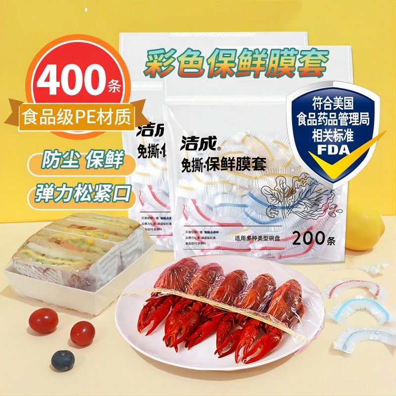洁成一次性保鲜膜套400只装,专为家庭厨房设计,实用便捷。采用食品级PE材质,安全无味,可放心接触各类食物。弹性松紧口设计,适配不同尺寸的碗、盘、水果等,轻松套取,密封性强,有效防止串味、保鲜锁水。适用于冰箱冷藏、剩菜收纳、水果保鲜等多种场景,使用后直接丢弃,省时省力。400只大容量装,满足家庭长期使用需求,经济实惠。无论是日常饮食储存还是聚会备餐,洁成保鲜膜套都是提升厨房效率的理想选择,让食物保鲜更简单、生活更洁净。