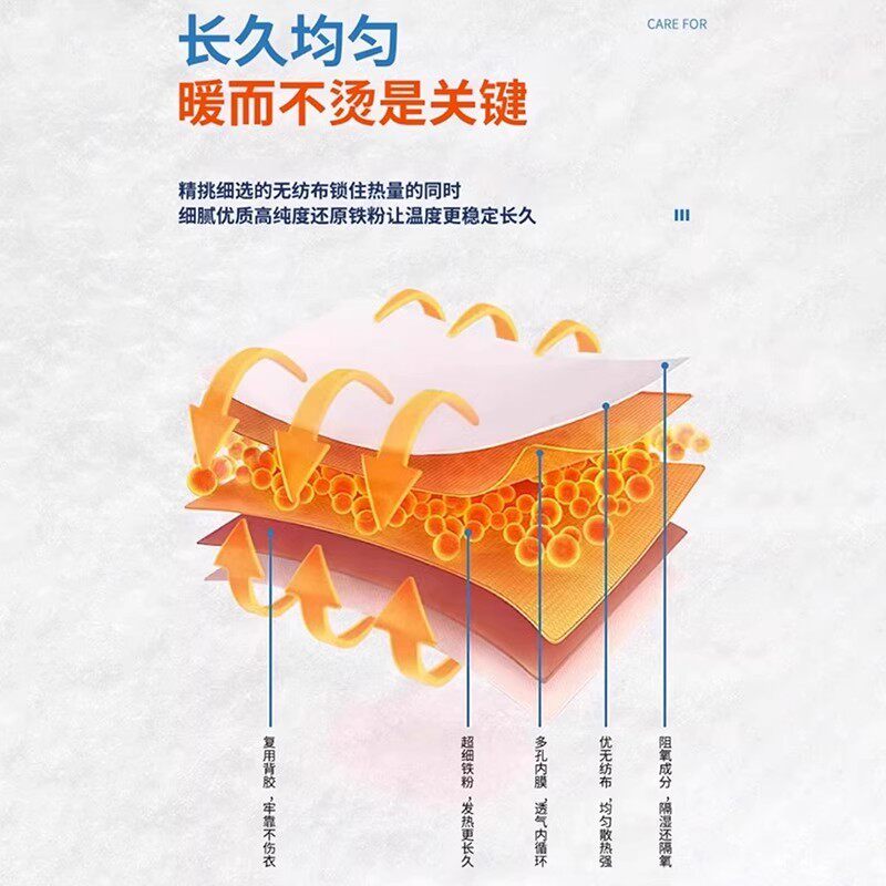 暖宝宝贴家居大号暖贴是一款专为长时间保暖设计的发热贴,采用优质铁粉、活性炭、矿物材料等安全成分,通过氧化反应持续发热12小时以上,温度稳定在40℃-50℃之间,温暖舒适不烫肤。大号尺寸特别适合贴敷于腰部、背部、腹部等较大部位,有效缓解肌肉酸痛、关节僵硬和寒冷带来的不适。粘贴牢固,透气防漏,可安心用于衣物内侧,适合冬季居家、办公或户外活动时使用。无明火、无辐射,安全环保,是冬季保暖、热敷理疗的理想选择,尤其适合老人、女性及体寒人群日常保健使用。