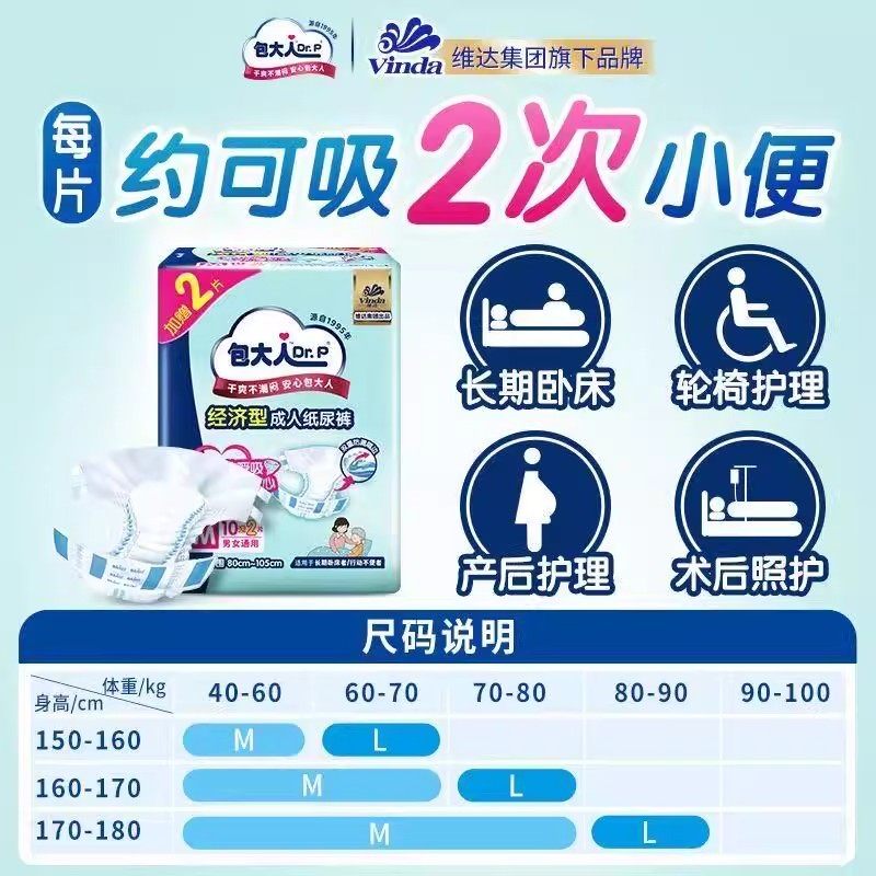 包大人成人纸尿裤M/L码,专为老人、孕产妇及行动不便人群设计,男女通用,贴心呵护每一步。采用高吸收芯体,快速锁水防漏,保持肌肤干爽舒适;立体防漏隔边有效防止侧漏,安心整夜。柔软亲肤表层,减少摩擦刺激,适合长时间穿戴。M/L码适配不同体型,弹性腰围贴合身形,穿脱便捷。现推出“买一送一”优惠活动,性价比超高,是家庭护理的理想之选。无论是术后恢复、产后护理,还是日常失禁护理,包大人都以专业品质守护尊严与舒适,让关爱更贴心、更省心。