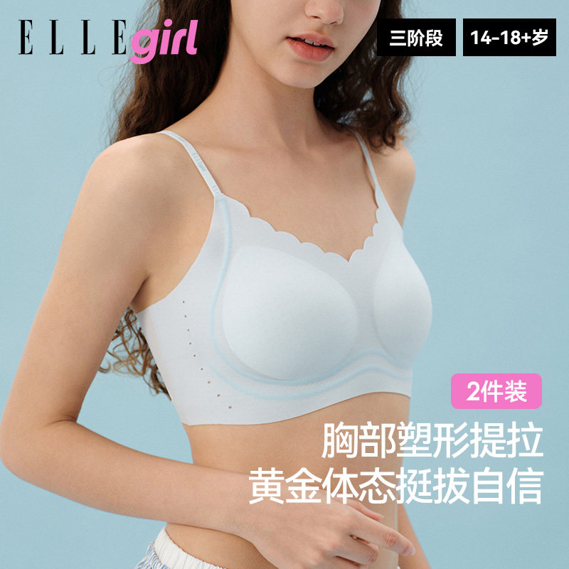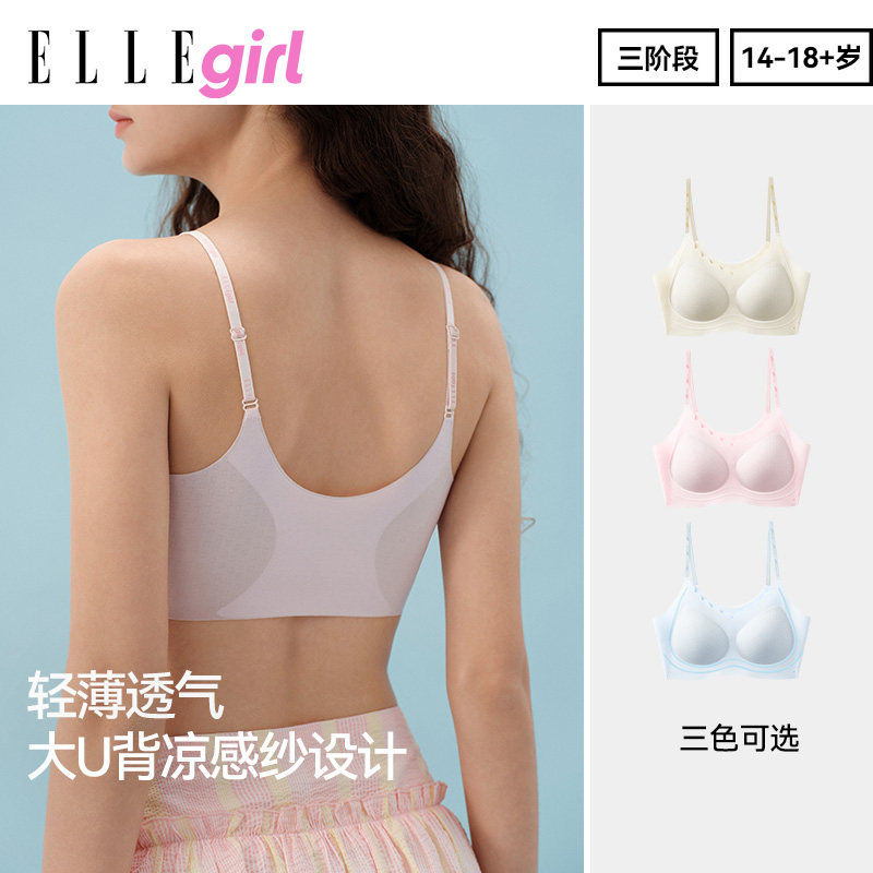 天猫ELLE girl少女内衣大胸显小发育期薄款文胸女一片式无痕女生背心