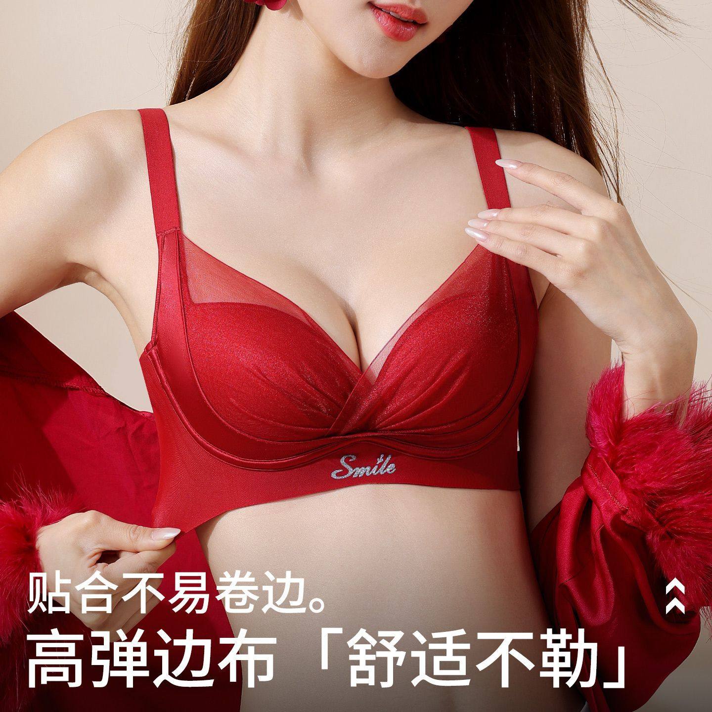 维多利亚多培尔性感蕾丝红色内衣女大胸显小收副乳大码文胸罩套装