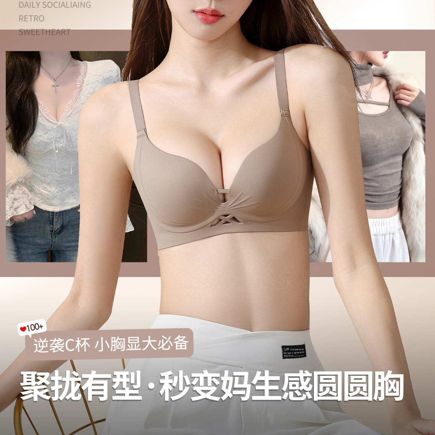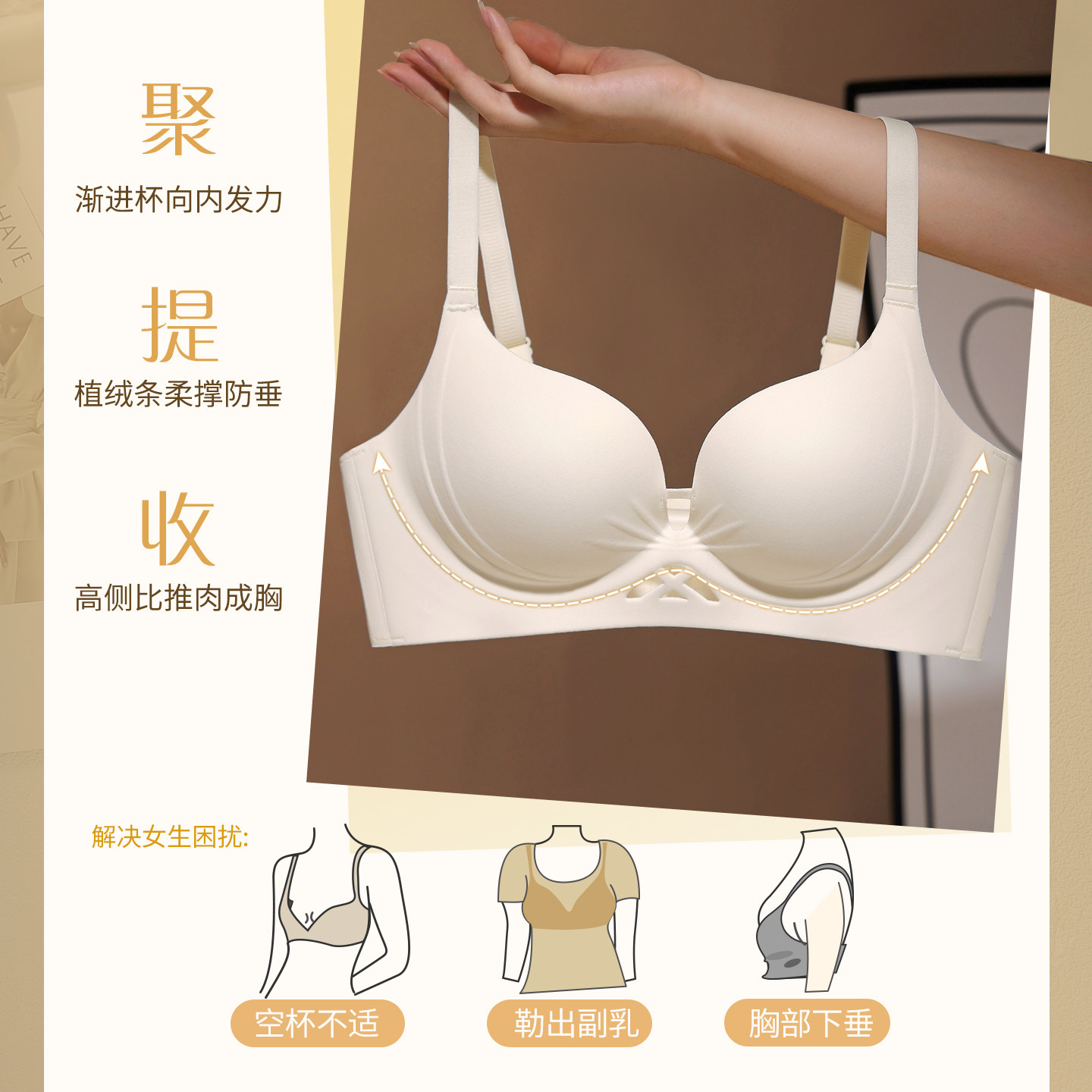 天猫2025新款爆款内衣女聚拢小胸显大胸罩无痕上托收副乳防下垂文胸