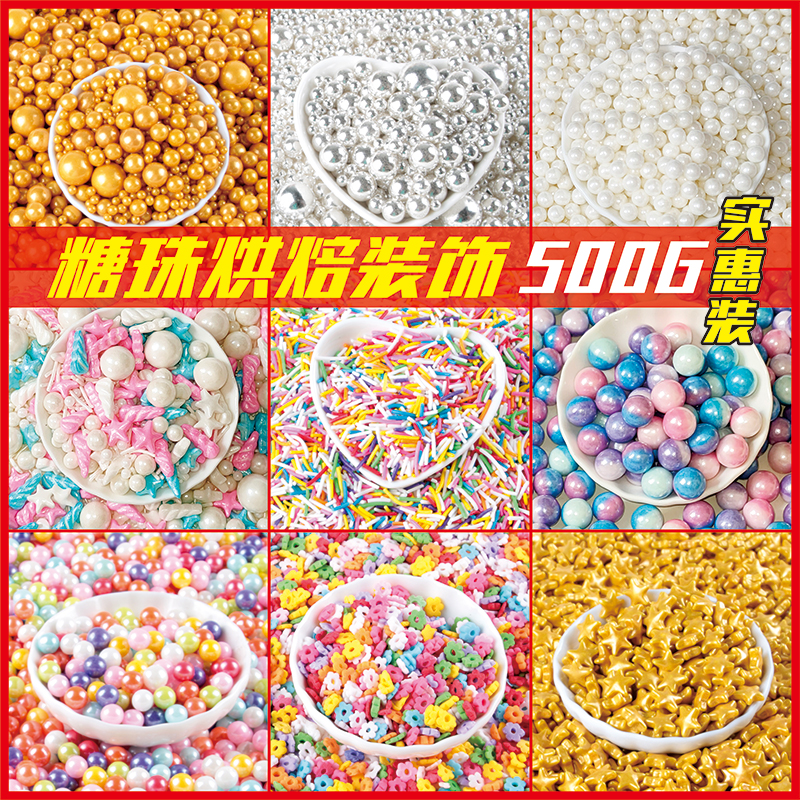 淘宝五角星金色银色烘焙白色彩色糖珠糖豆蛋糕装饰甜甜圈食用彩针500g