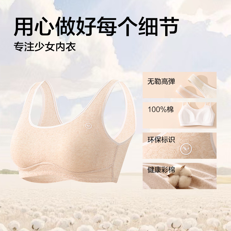 天猫婷美内衣女士纯棉少女儿童内衣发育期小学生A类全棉无痕文胸tx