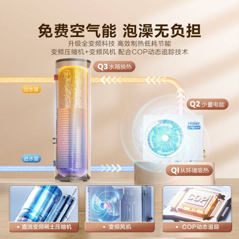 淘A政府补贴海尔空气能热水器太空能家用热泵光电加热节能一级能效