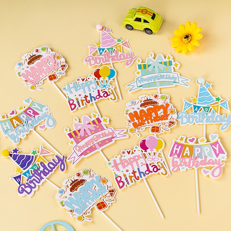 淘宝彩色糖果礼盒Happy birthday生日蛋糕装饰儿童生日快乐卡通插牌