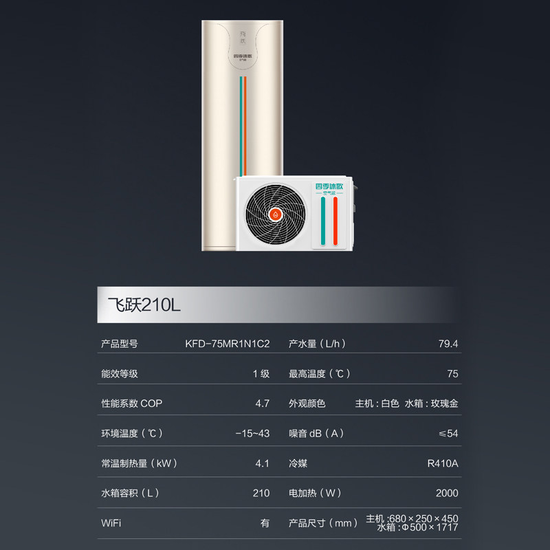 四季沐歌210L家用空气能热水器,采用先进空气源热泵技术,实现超一级能效,节能省电高达75%以上。搭载高效压缩机与环保冷媒,四季稳定制热,-15℃低温环境下仍能强劲运行。210L大容量设计,满足全家多人连续洗浴需求,热水即开即享。智能控制系统支持定时预约、温度调节与故障自检,操作便捷安全。水箱采用搪瓷内胆,防腐抗垢,寿命更长久。外机结构紧凑,安装灵活,适应多种户型。集节能、环保、安全、舒适于一体,是现代化家庭理想热水解决方案,助力绿色智慧生活。