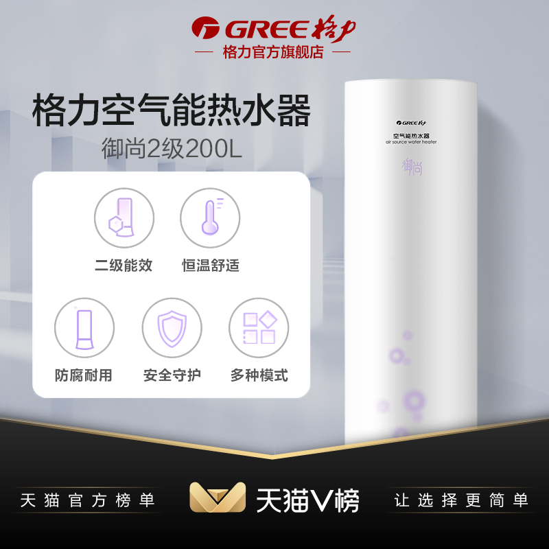 天猫Gree/格力空气能热水器200升家用空气源热泵二级能效绿色智能御尚
