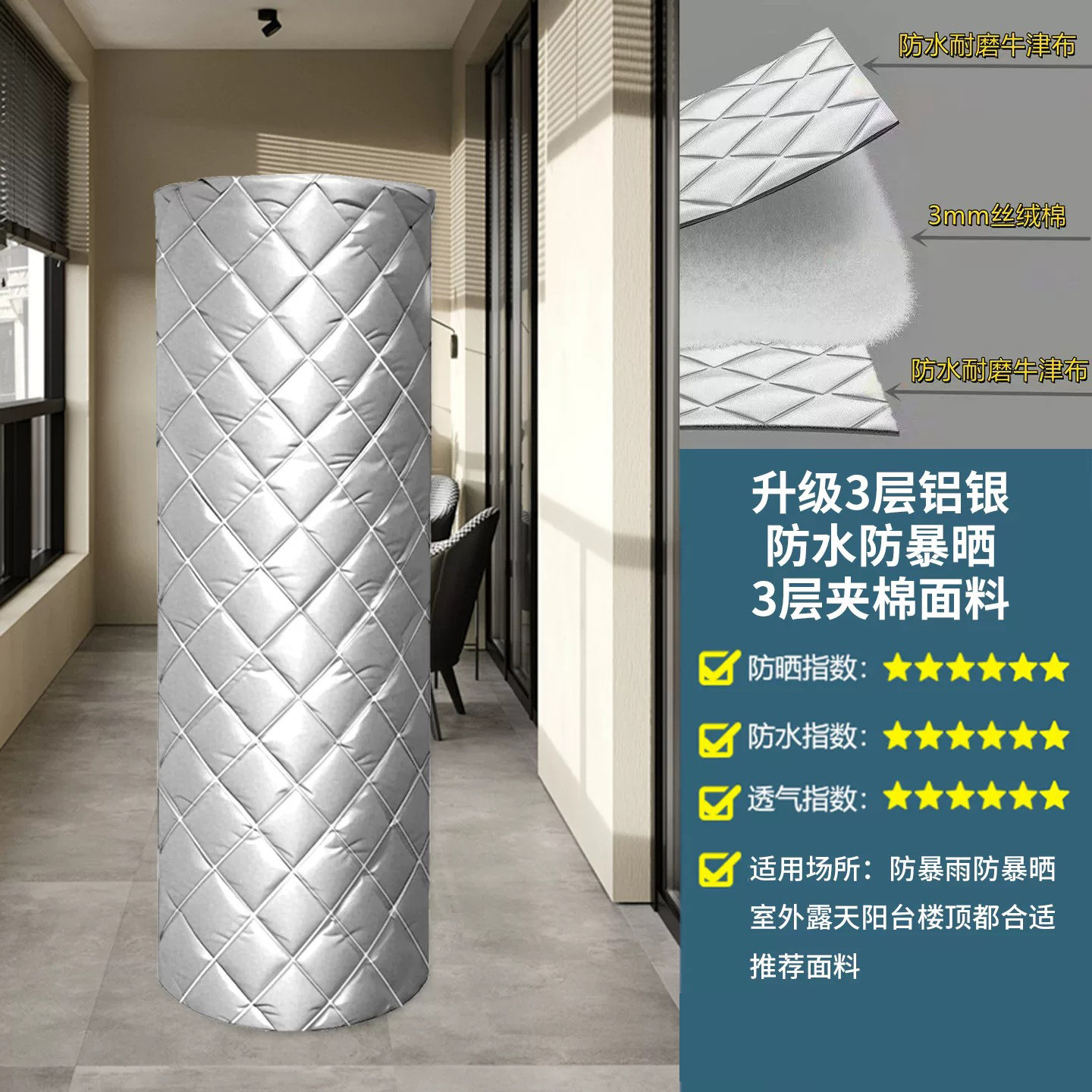 海尔、格力、美的空气能热水器保温罩专为户外水箱设计,具备优异的防水、防晒、防雨、防尘功能。采用加厚防晒面料,有效抵御紫外线老化,延长热水器使用寿命;内里添加保温层,冬季减少热量流失,提升能效,节能省电。罩体四周设有收紧带或魔术贴,安装简便,紧密贴合不同型号水箱,防止风雨侵入。底部透气设计避免水汽积聚,保持设备干燥。适用于多种品牌机型,兼具实用性与美观性,是保护空气能热水器、延长设备寿命的理想选择,让用户四季安心使用,省心又节能。