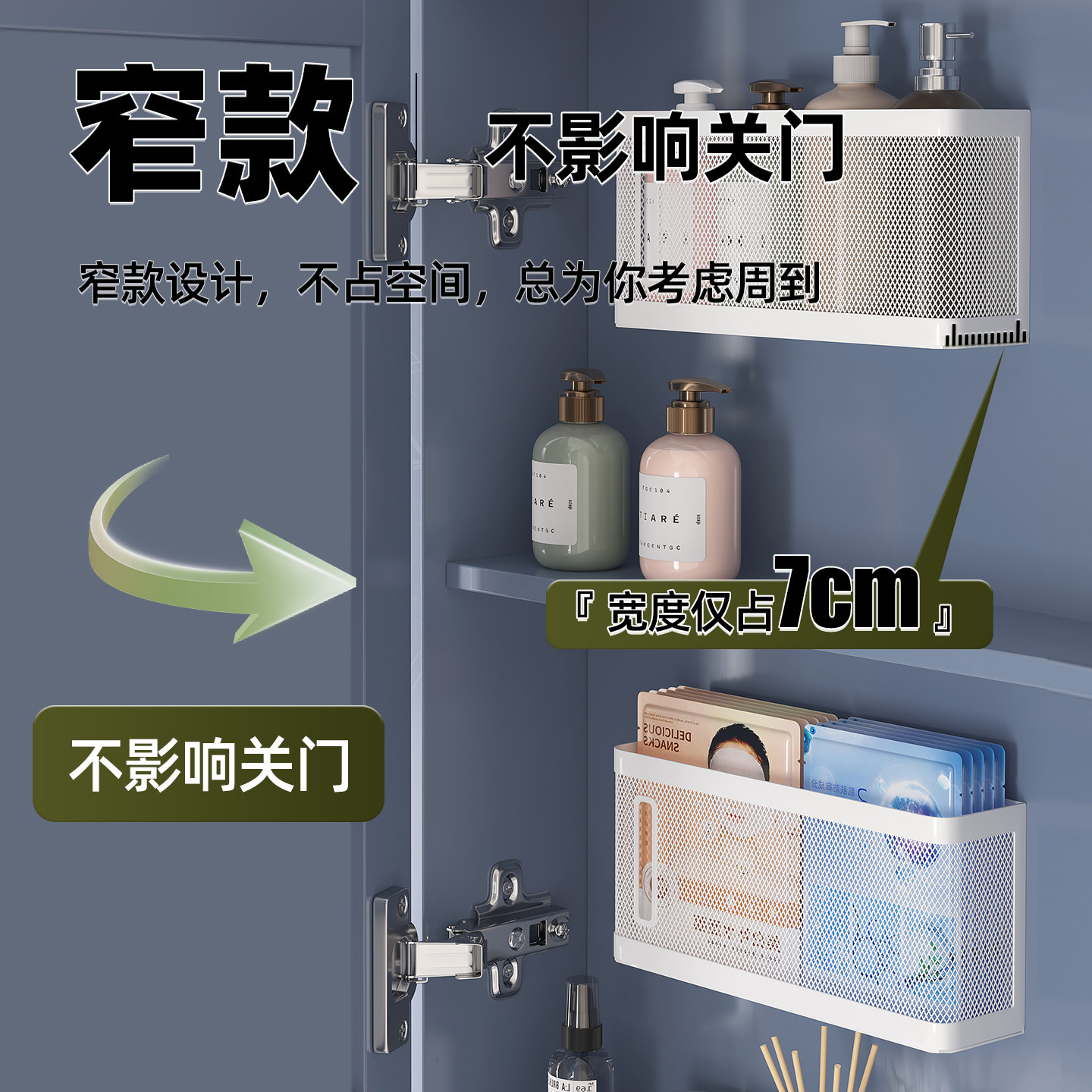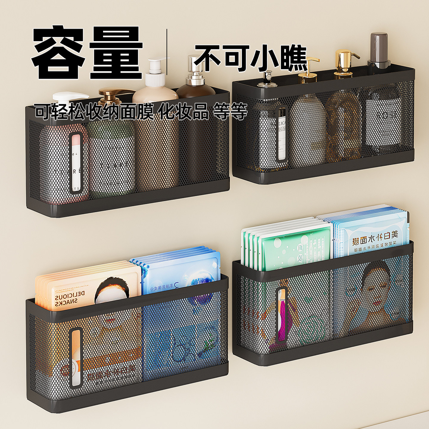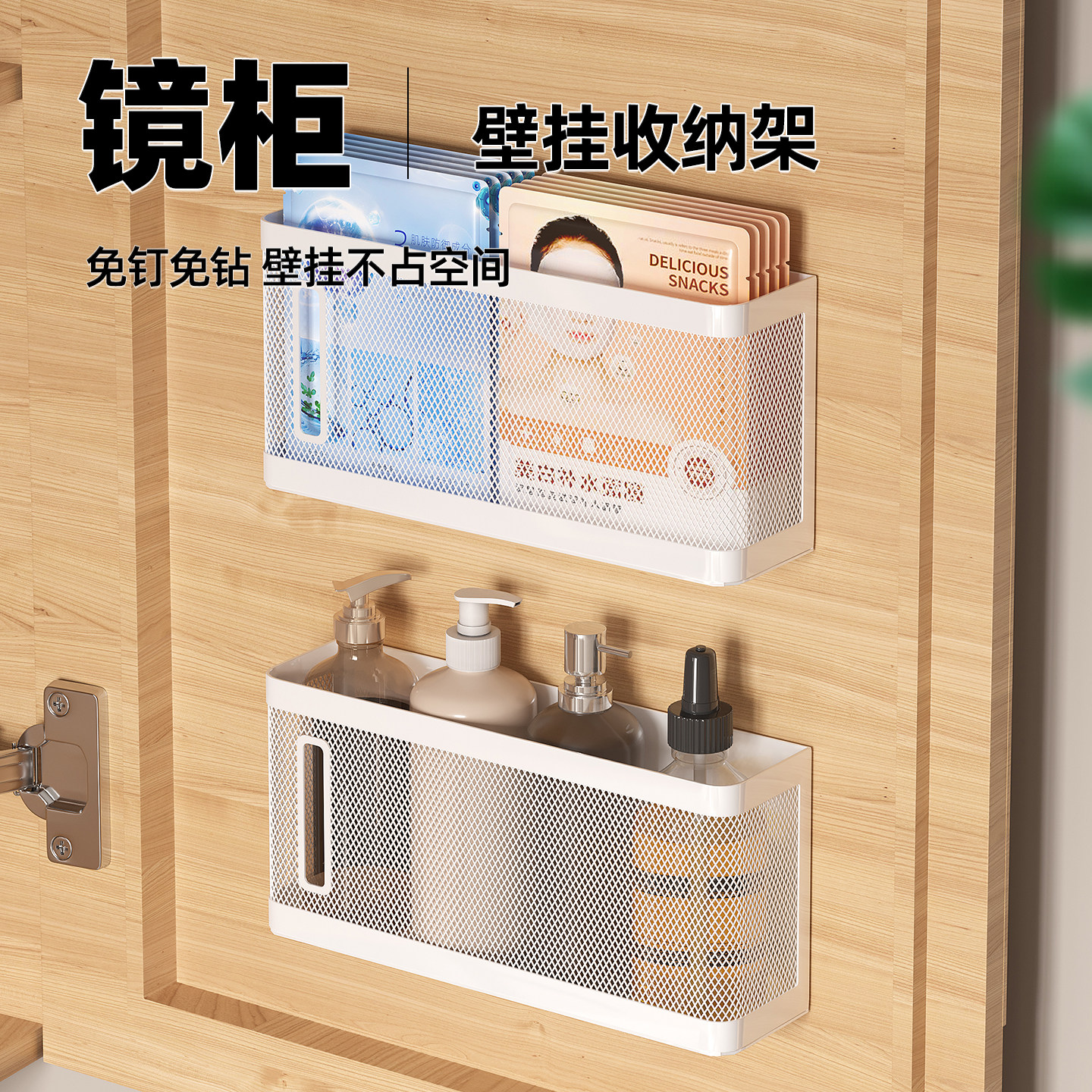 淘宝镜柜内收纳盒化妆品口红置物架卫生间浴室洗漱台面膜壁挂篮免打孔