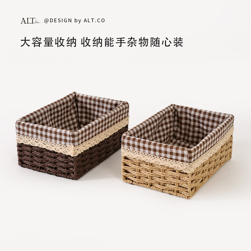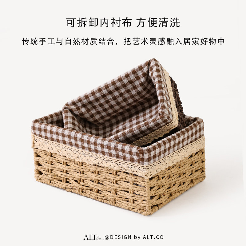 这款手工编织桌面收纳篮,采用天然纸绳精心编织而成,环保耐用,质感温润。长方形设计搭配大容量空间,可轻松收纳钥匙、文具、化妆品、遥控器等日常杂物,让桌面整洁有序。篮身结构稳固,边缘圆润光滑,手感舒适,兼具实用性与美观性。简约自然的外观风格,轻松融入北欧、日式或现代家居环境,既是收纳神器,也是桌面装饰亮点。无论是放在玄关、书桌、床头还是化妆台,都能提升生活品质,让琐碎物品井井有条,是家居收纳的理想之选。