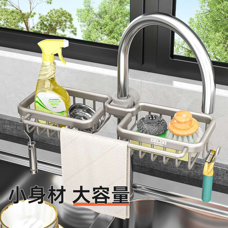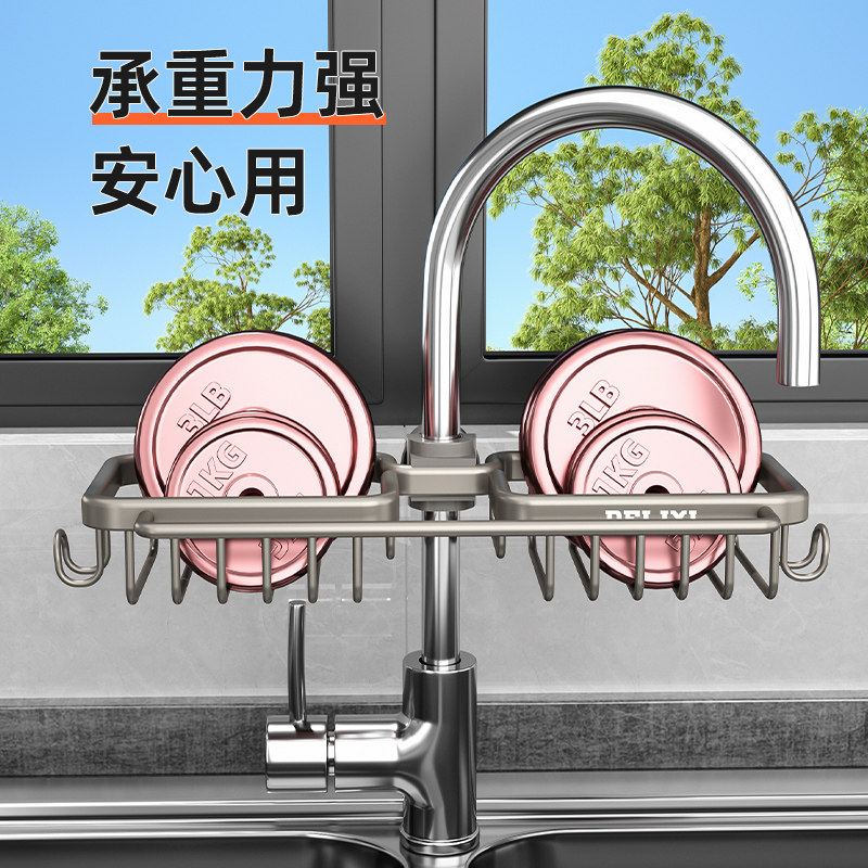 天猫德力西厨房水龙头置物架洗碗洗菜池水槽架沥水篮海绵刷抹布收纳架