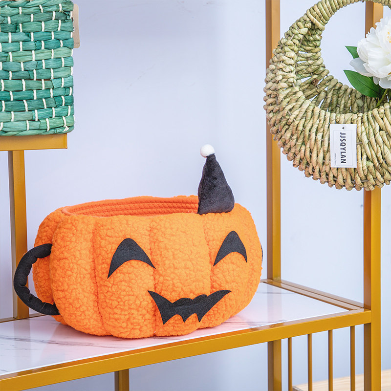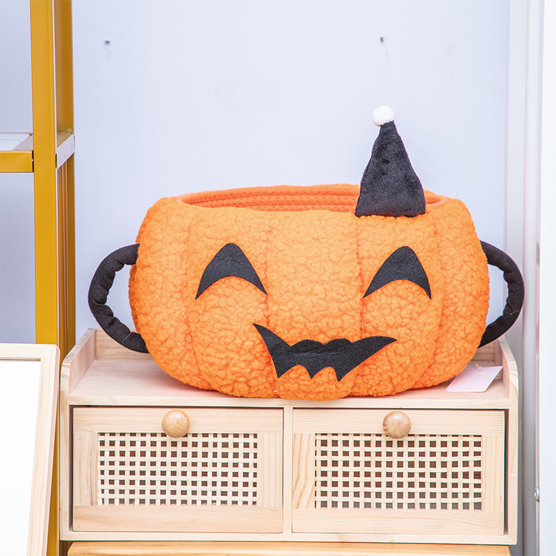 天猫南瓜毛毡收纳筐可爱收纳篮编织多巴胺零食篮杂物筐棉线家用储纳盒