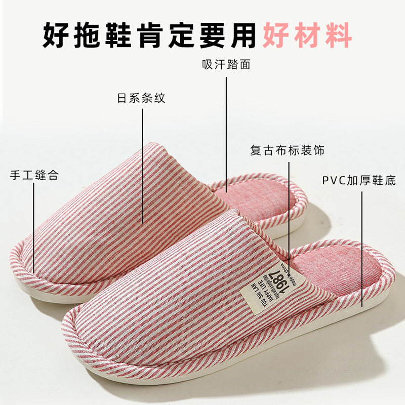 天猫吸汗透气日式布拖鞋女夏防滑室内家居不防臭脚异味防出汗脚男春秋