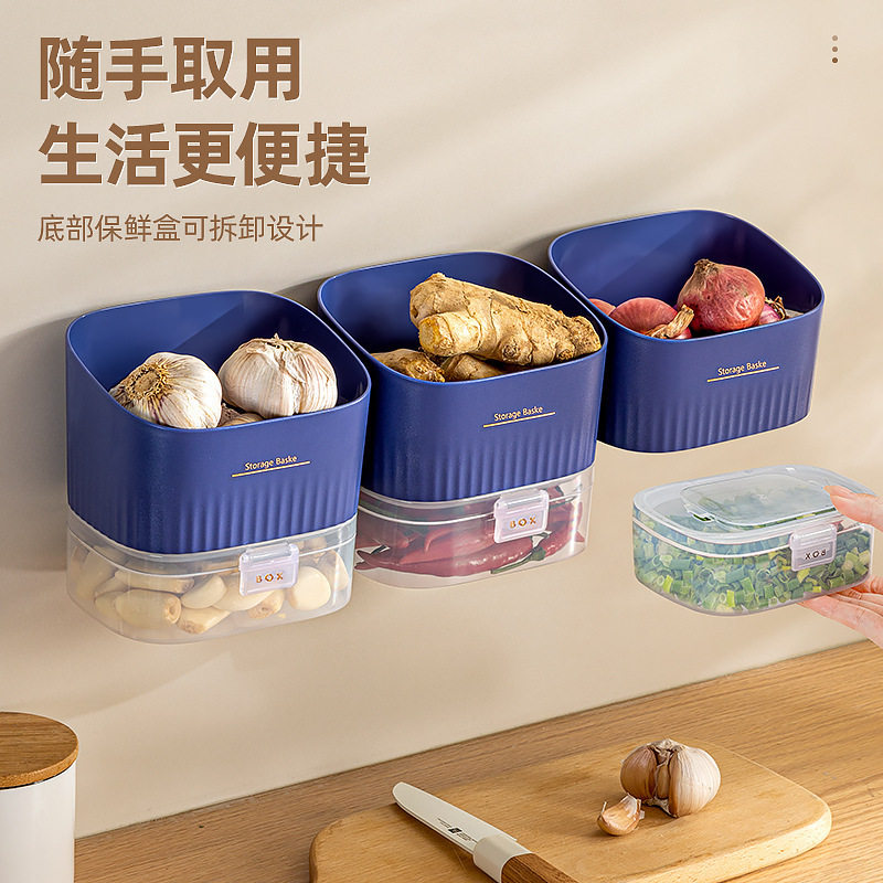 淘宝葱姜蒜收纳筐厨房放蒜头壁挂置物篮生姜大蒜收纳架挂墙食物盒神器