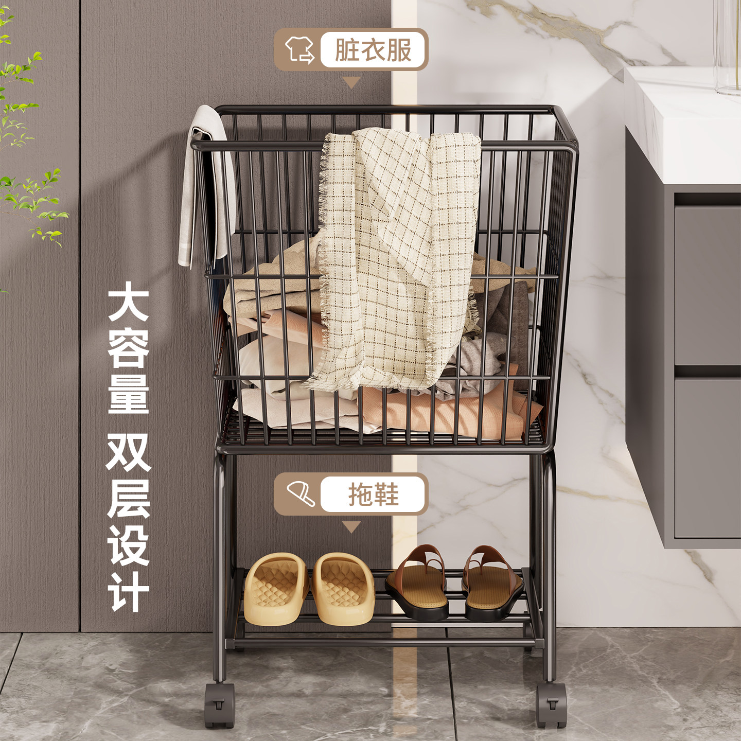 天猫家用脏衣篮洗衣机旁脏衣服收纳筐落地移动小推车浴室卫生间脏衣篓