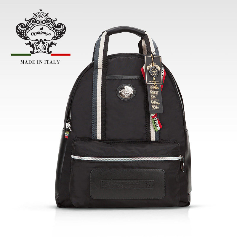 天猫Orobianco意大利进口真皮尼龙休闲双肩包男电脑包书包女CHECKIN-C
