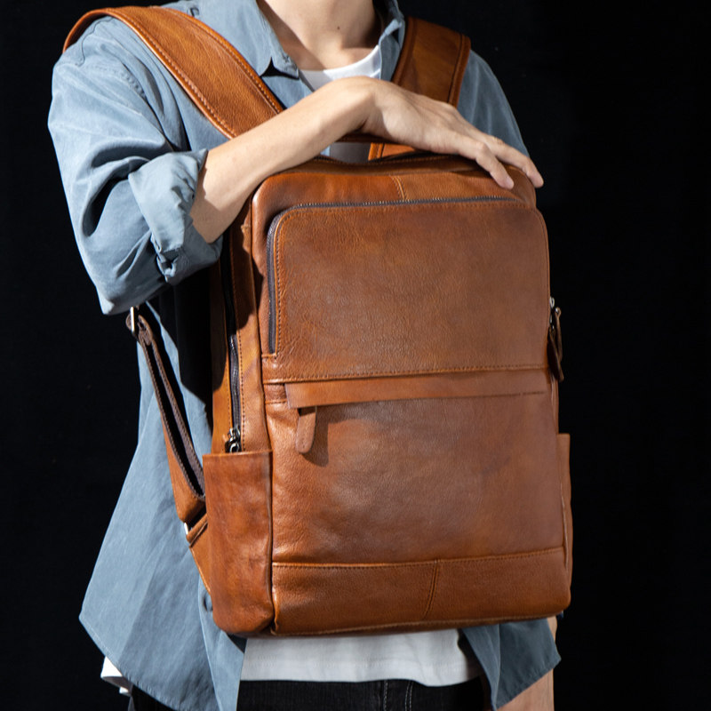 慢时光纯手工擦色植鞣皮双肩包,精选头层牛皮打造,采用传统植鞣工艺,皮质厚实耐用,随使用时间推移呈现独特光泽与质感。纯手工擦色工艺赋予包包复古韵味,每一道纹理都彰显匠心独运。大容量设计轻松容纳15.6英寸笔记本电脑、衣物及日常用品,多隔层布局井然有序,满足旅行、通勤与日常出行需求。宽厚肩带贴合人体工学,背负舒适不勒肩。无论是都市漫步还是短途远行,这款真皮背包都以低调奢华的气质,陪伴您度过每一个慢节奏的美好时光,是品质与实用兼具的理想之选。