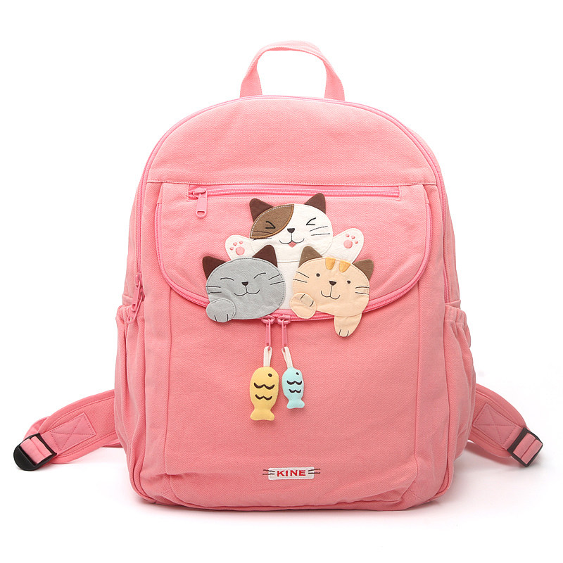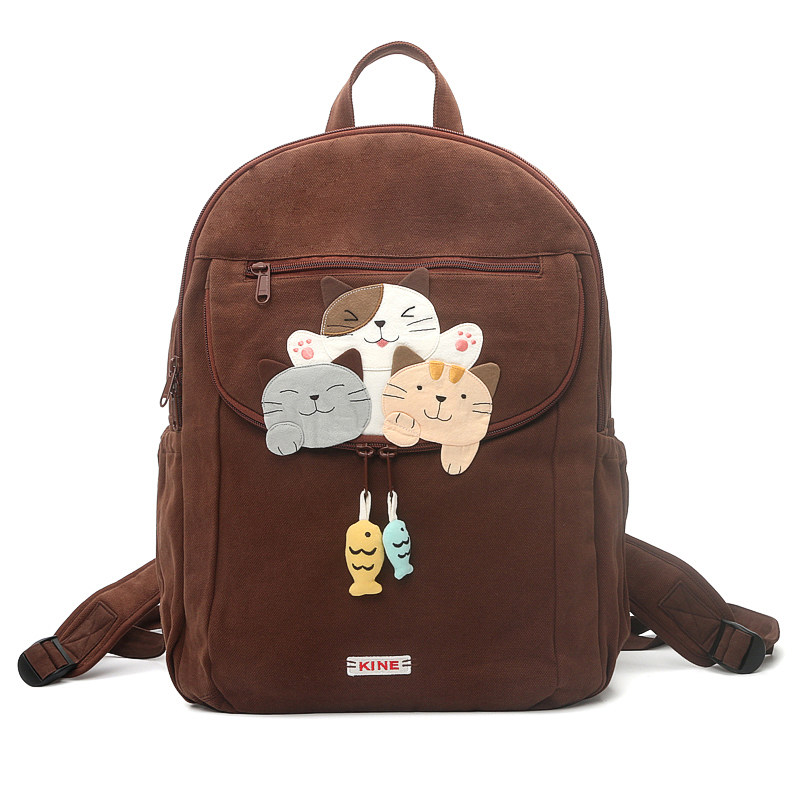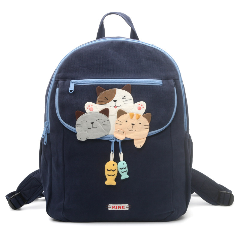 淘宝日本设计kine猫纯棉帆布布艺手工拼布多功能可爱双肩包书包电脑包