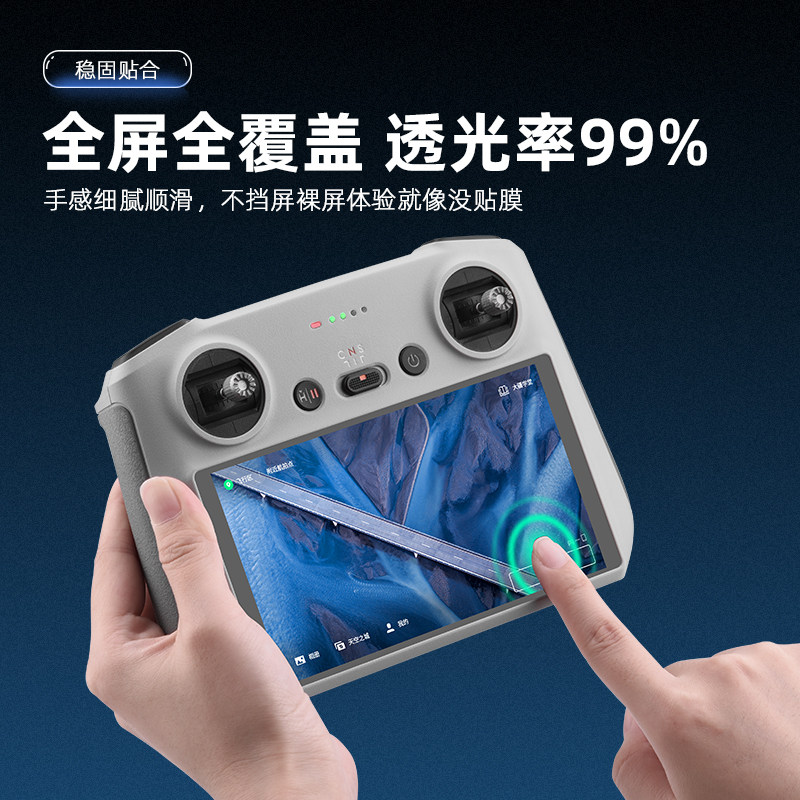 专为大疆Mini 3/4 Pro、御3 Pro及Air 3无人机设计的RC2带屏遥控器屏幕保护膜,采用高透钢化玻璃材质,具备9H硬度,有效防刮耐磨,抵御日常使用中的划痕与碰撞。膜面经过疏油疏水涂层处理,抗指纹、易清洁,确保屏幕显示清晰透亮。精准开孔设计,完美贴合遥控器屏幕,不影响触控灵敏度与视觉体验。安装简便,无气泡、不翘边,提供全面防护。高清高透特性还原真实色彩,是守护无人机遥控器屏幕的理想配件,让飞行操控更安心、更持久。