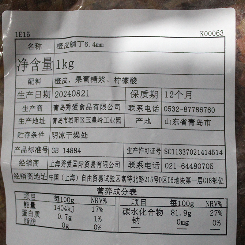淘宝秀爱糖渍橙皮丁1kg 果脯丁干即食蛋糕面包饼干牛轧糖夹心馅料烘焙