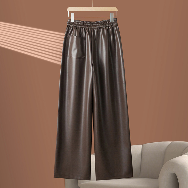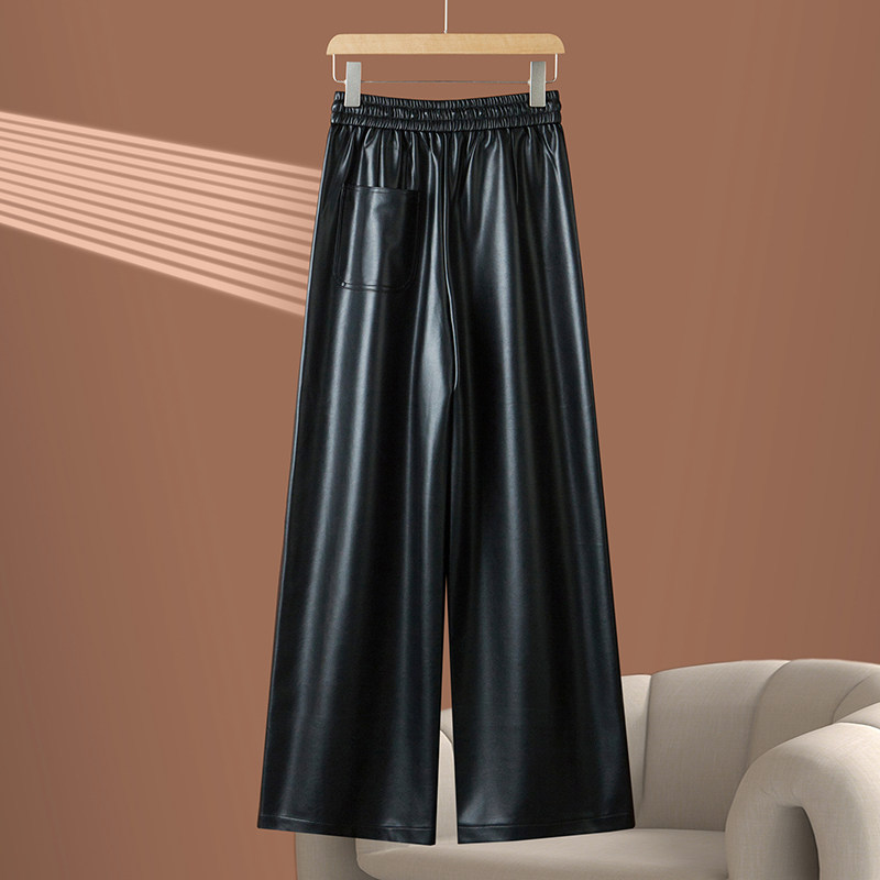 淘宝海宁新款真皮皮裤女绵羊皮松紧腰阔腿裤韩版长裤直筒裤显瘦休闲裤