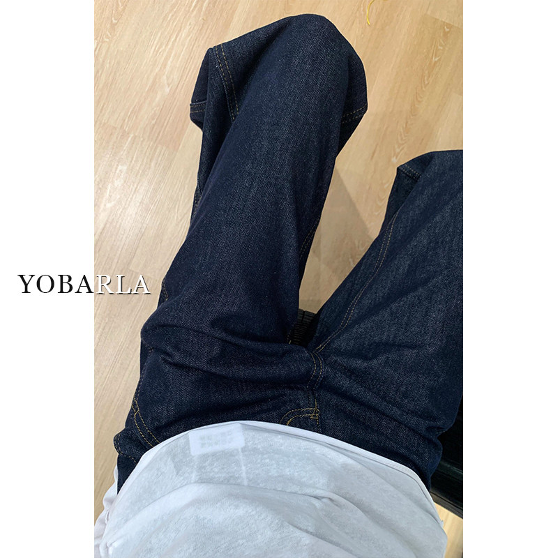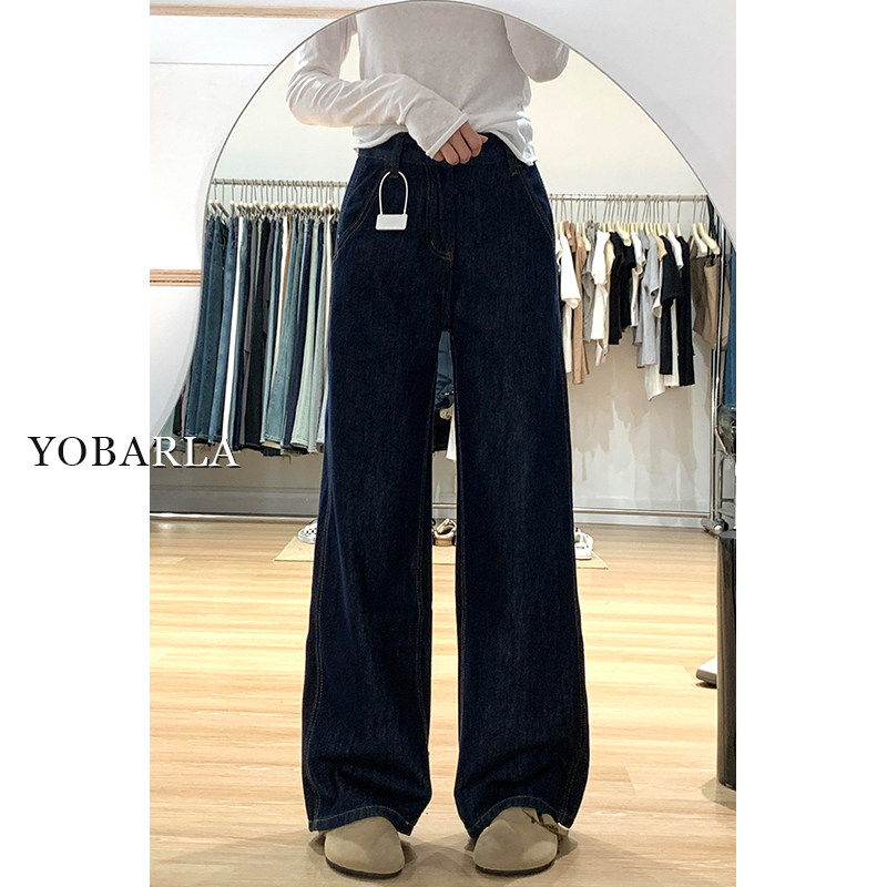 淘宝深蓝色直筒牛仔裤女秋冬加绒大码胖mm宽松垂感显瘦梨形身材阔腿裤