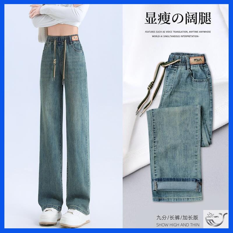 淘猫猫家加长女裤春夏高个子奶茶色直筒阔腿牛仔裤女高腰宽松拖地裤