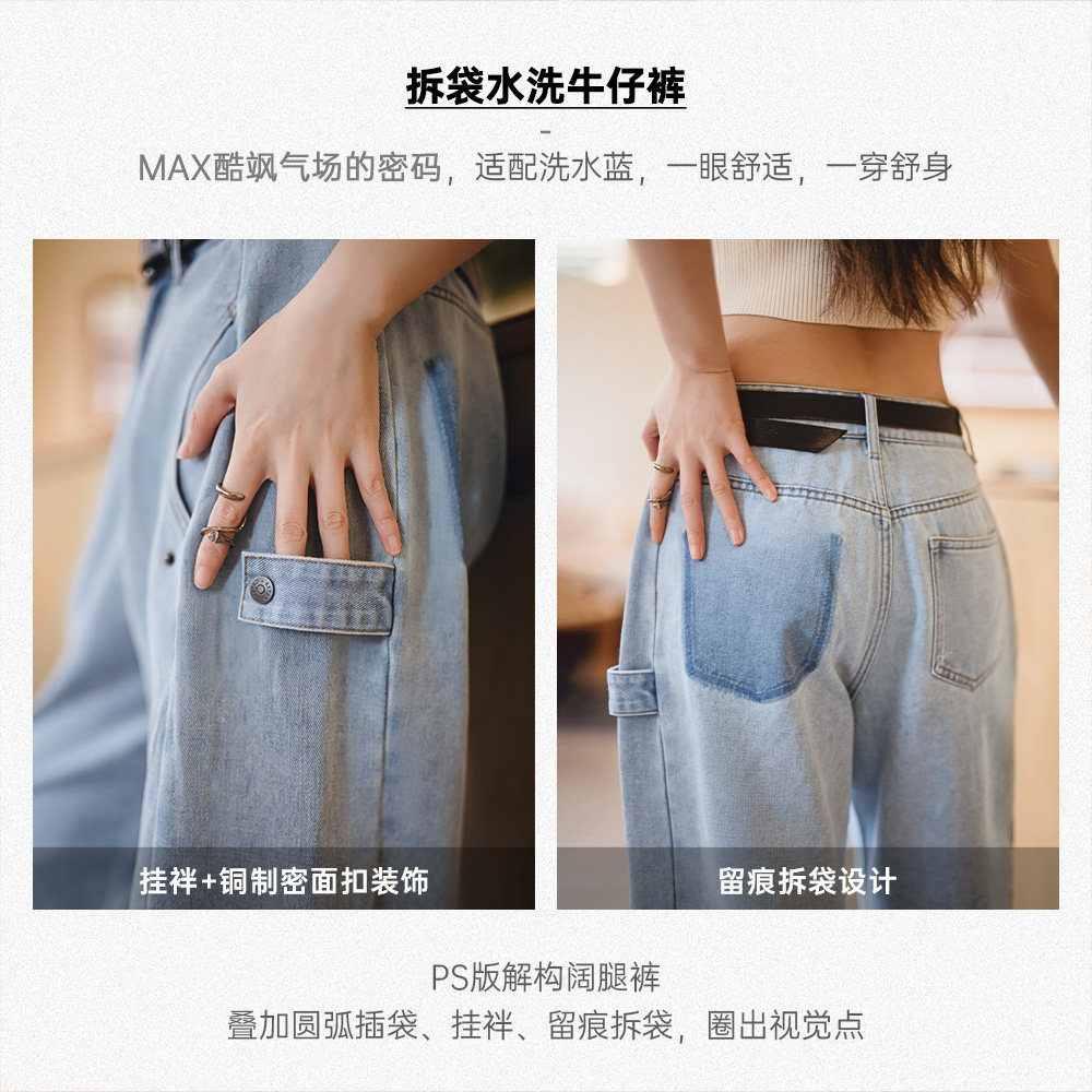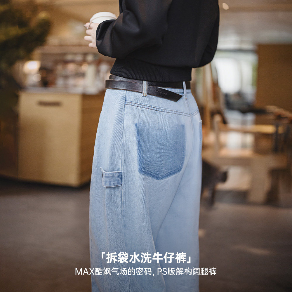 淘宝马登boxyfit解构感复古拆袋水洗牛仔裤高街跳舞直筒阔腿裤子女秋