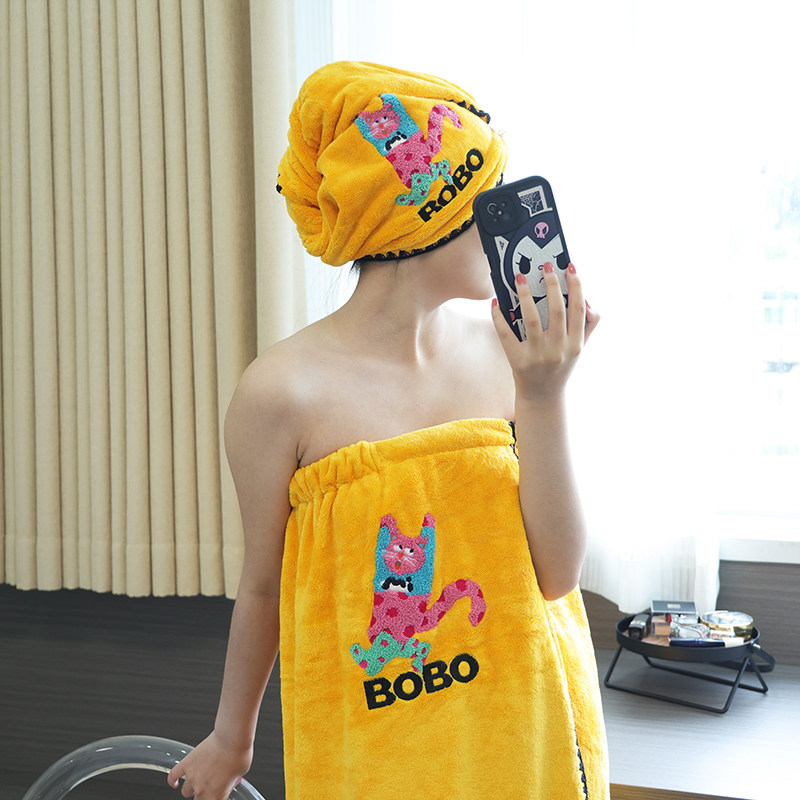 A发帽女吸水速干擦头干发毛巾包边双面可用加厚成人女双层速干帽