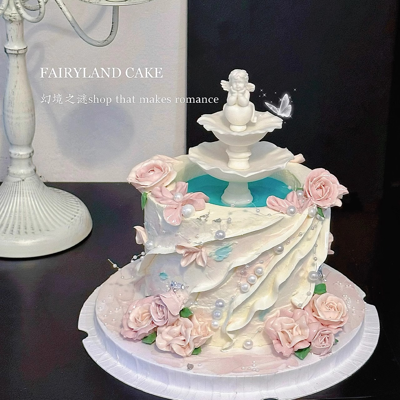 淘宝许愿池小天使生日蛋糕装饰摆件复古水柱喷泉硅胶模具翻糖巧克力模