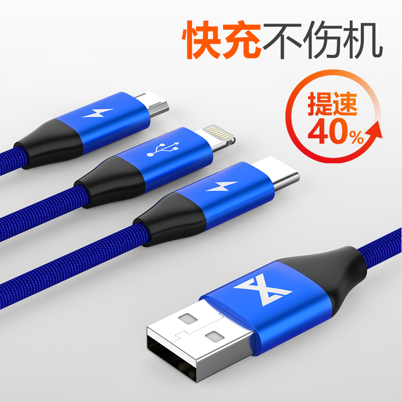 天猫数据线三合一适用于苹果安卓type-c手机充电线iphone15一拖三快充冲电线头