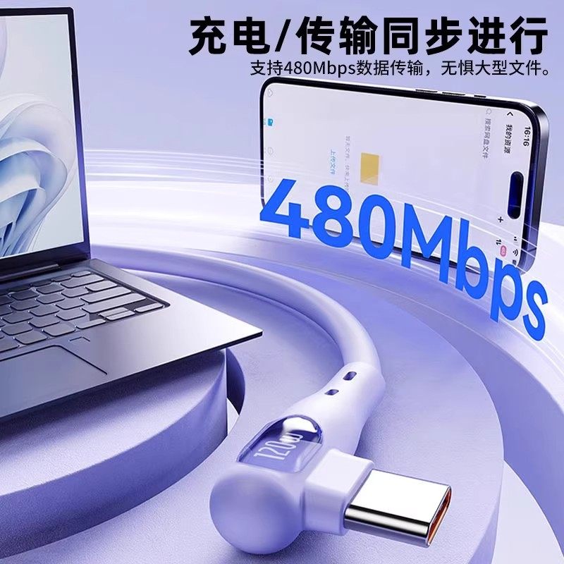 淘宝快充数据线Type-C适用华为荣耀安卓闪充小米弯头式手游数据线6A手机充电线充电器vivo通用超级快充充电器头
