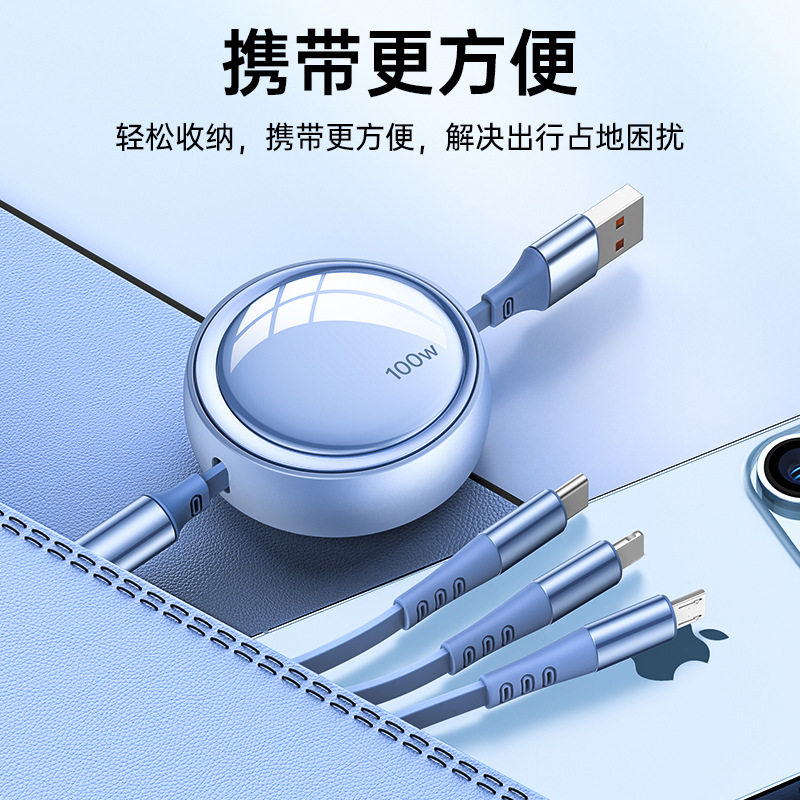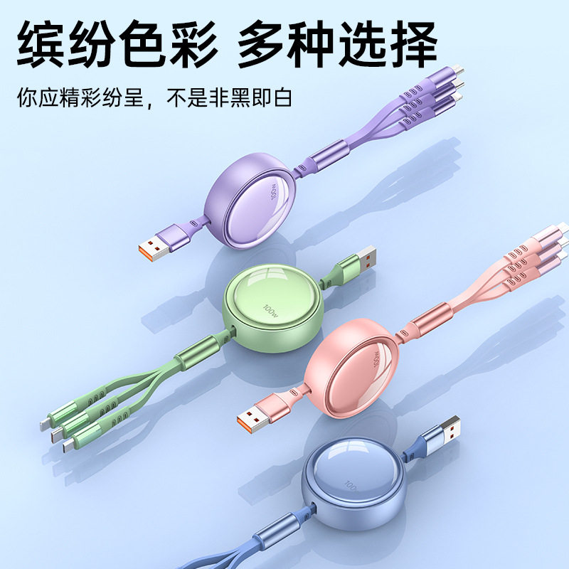 这款伸缩一拖三数据线集多功能与高效充电于一体,支持100W超级快充和6A大电流输出,兼容华为、iPhone、苹果、vivo、荣耀、OPPO、小米等主流品牌设备。采用Type-C、Lightning和Micro USB三合一设计,一根线满足多种设备充电需求,出行更便捷。内置智能芯片,自动识别设备并匹配最佳电流,保障充电安全。伸缩结构自由调节长度,收纳整齐不缠绕,兼顾实用与美观。支持66W闪充,大幅提升充电效率,告别漫长等待。无论是居家、办公还是旅行,这款多功能数据线都是理想的充电解决方案,高效、安全、便携,畅享智能生活。