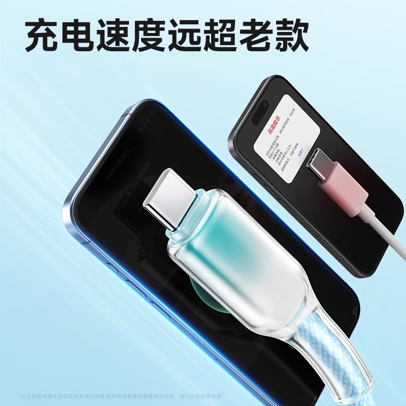 淘宝双Type-C晶透渐变编织数据线240W超级快充适用苹果15华为荣耀小米OPPOvivo手机iPad平板笔记本蓝牙耳机充电线