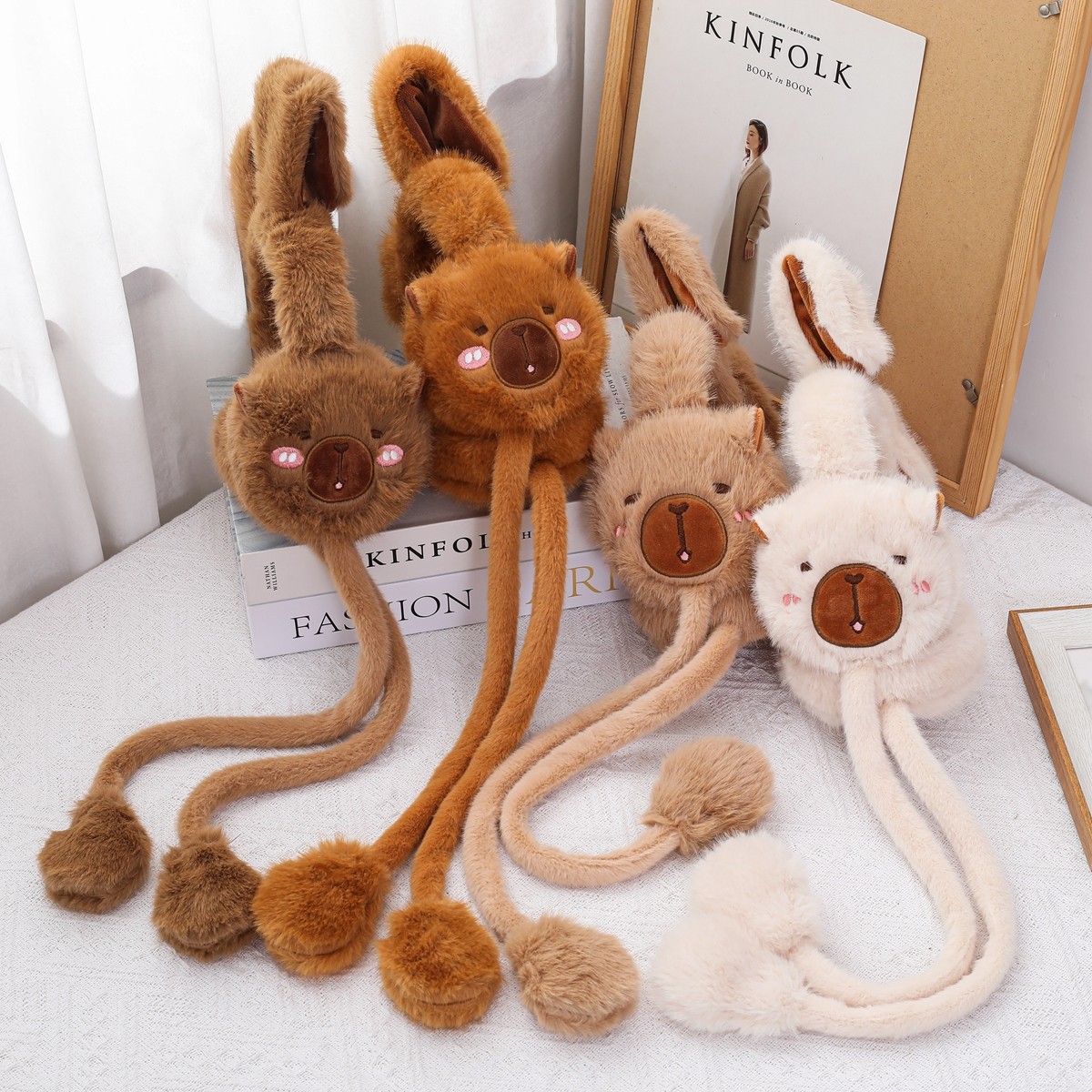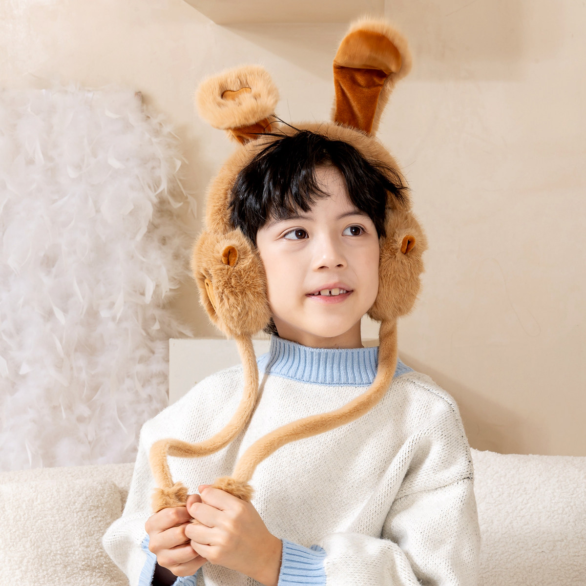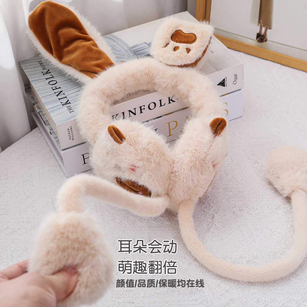 天猫卡皮巴拉耳罩男女中大童耳朵会动冬季保暖护耳防寒耳套耳捂子