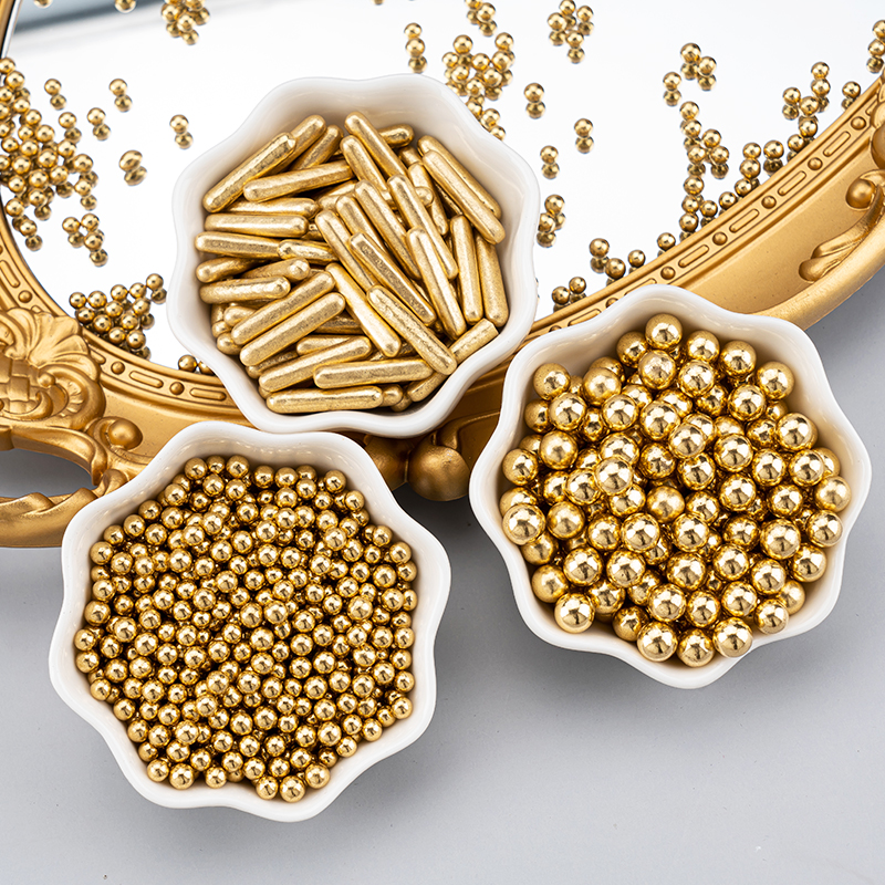 金色系糖珠糖针甜品烘焙蛋糕装扮摆件生日派对甜甜圈冰激凌装饰糖